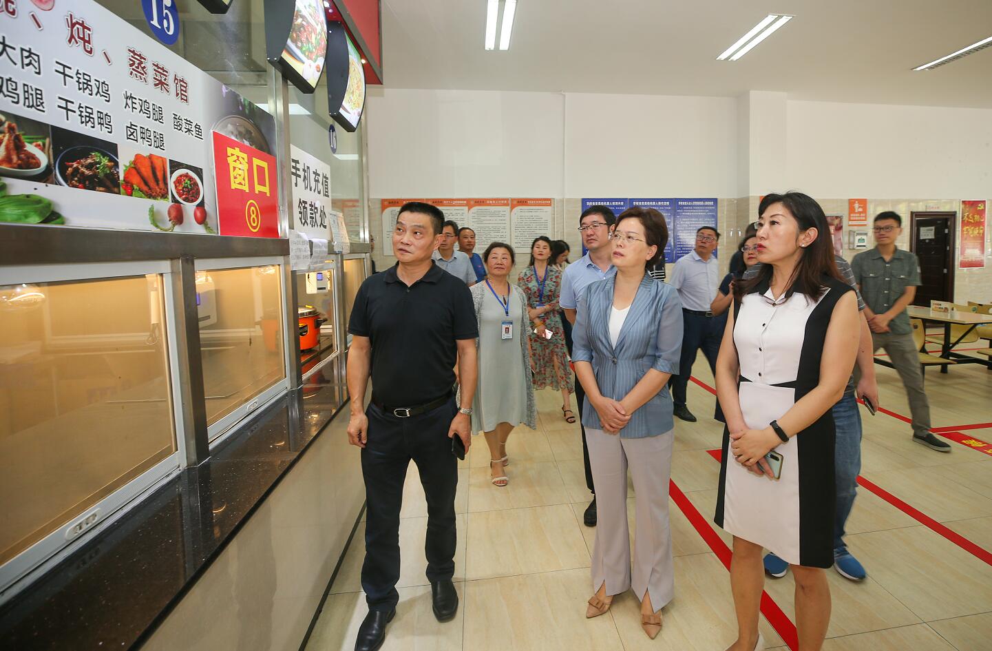 9月7日下午,市人民政府党组成员、副市长朱莉一行到实训与服务中心学生食堂检查工作。市市场监管局局长任永强、副局长卫刚,市教育局副局长许江涛,经开区管委会副主任徐方亮,学院党委书记李春模,党委副书记、院长石静,党委委员、副院长谭凌陪同检查。