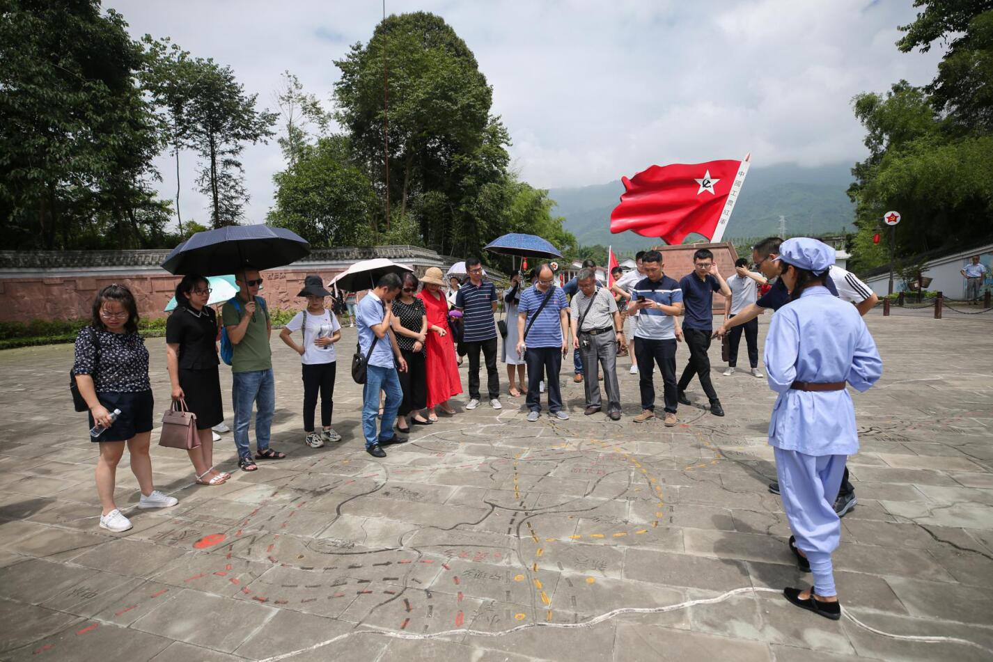 1935年11月至1936年2月,红四方面军在天全县战斗108天,建立了红军大学、红军总政治部、红军总医院、苏维埃政权,留下了众多珍贵的革命遗物、遗迹和史料,成为宝贵的精神财富。党员同志们来到仁义镇“红军村”,在红军广场,面对党旗重温了入党誓词,为11名在6、7月份入党的同志集体过了“政治生日”。随后,党员同志们实地参观了红军总部、红四方面军总政治部、红军大学、红军医院、红军井等旧址,第二党支部书记洪松林上了《红军长征在天全》微党课。