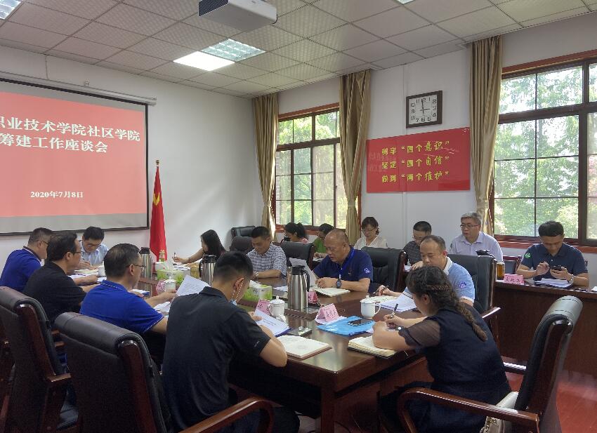 为更好地发挥学院人才、专业优势,搭建区校合作平台,推进雅安市创建全国文明城市工作,进一步创新政校合作模式,7月8日下午,学院在育才路校区B210会议室召开社区学院筹建工作座谈会。市委宣传部常务副部长、市文联主席寇青,市文明办副主任李祥及雨城区委组织部、宣传部,雨城区民政局、青江街道相关负责人受邀参加座谈会,学院党委书记李春模、副院长樊正康,成培处、后勤处、师范学院等部门主要负责人参加会议,会议由樊正康主持。