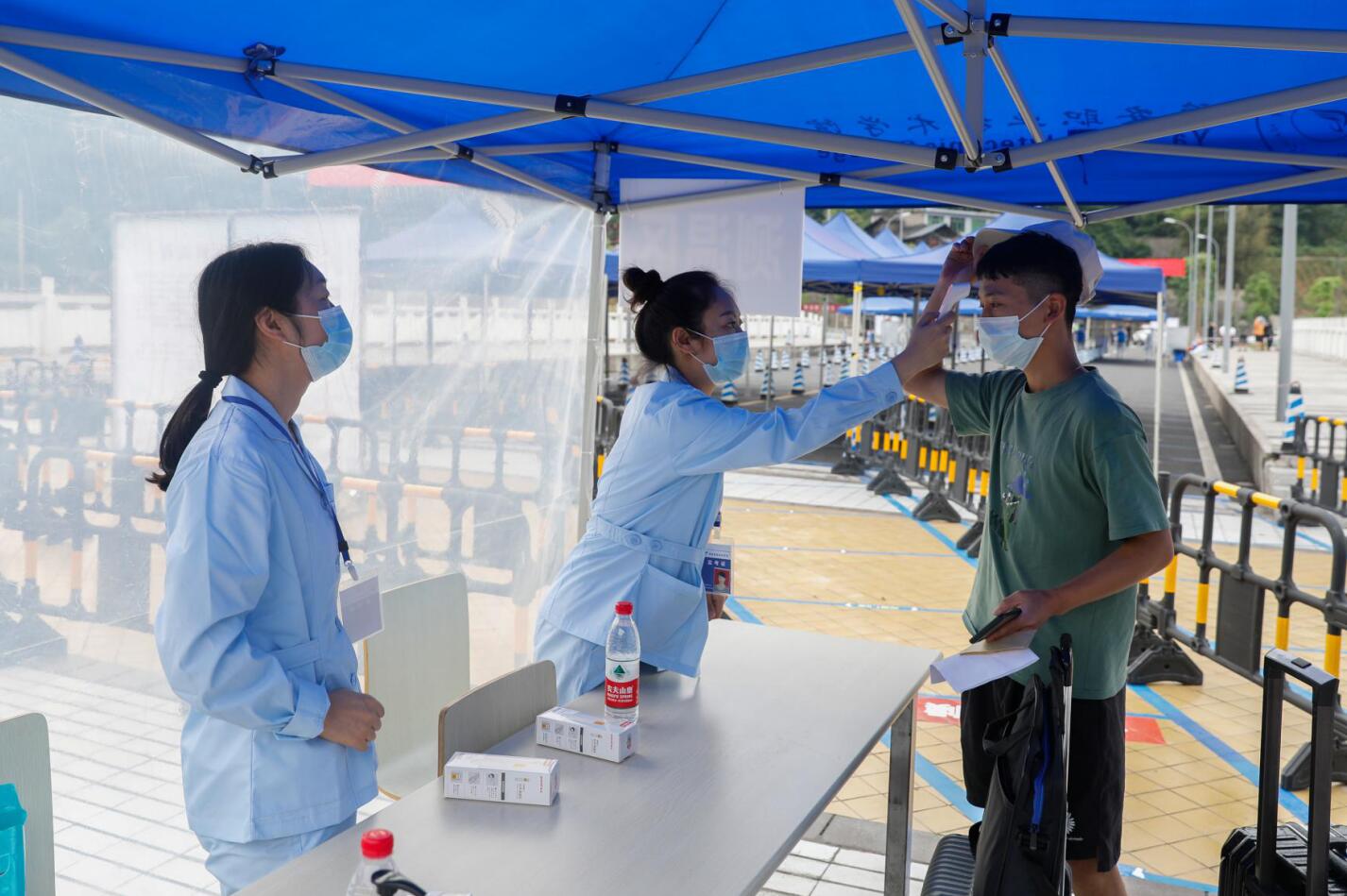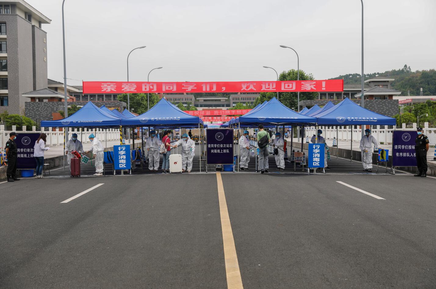 在报到注册区,辅导员何群老师说:“看见学生返校十分地激动,希望学生们能经受住疫情的考验,调整好心态,规划好未来的学习和生活。
