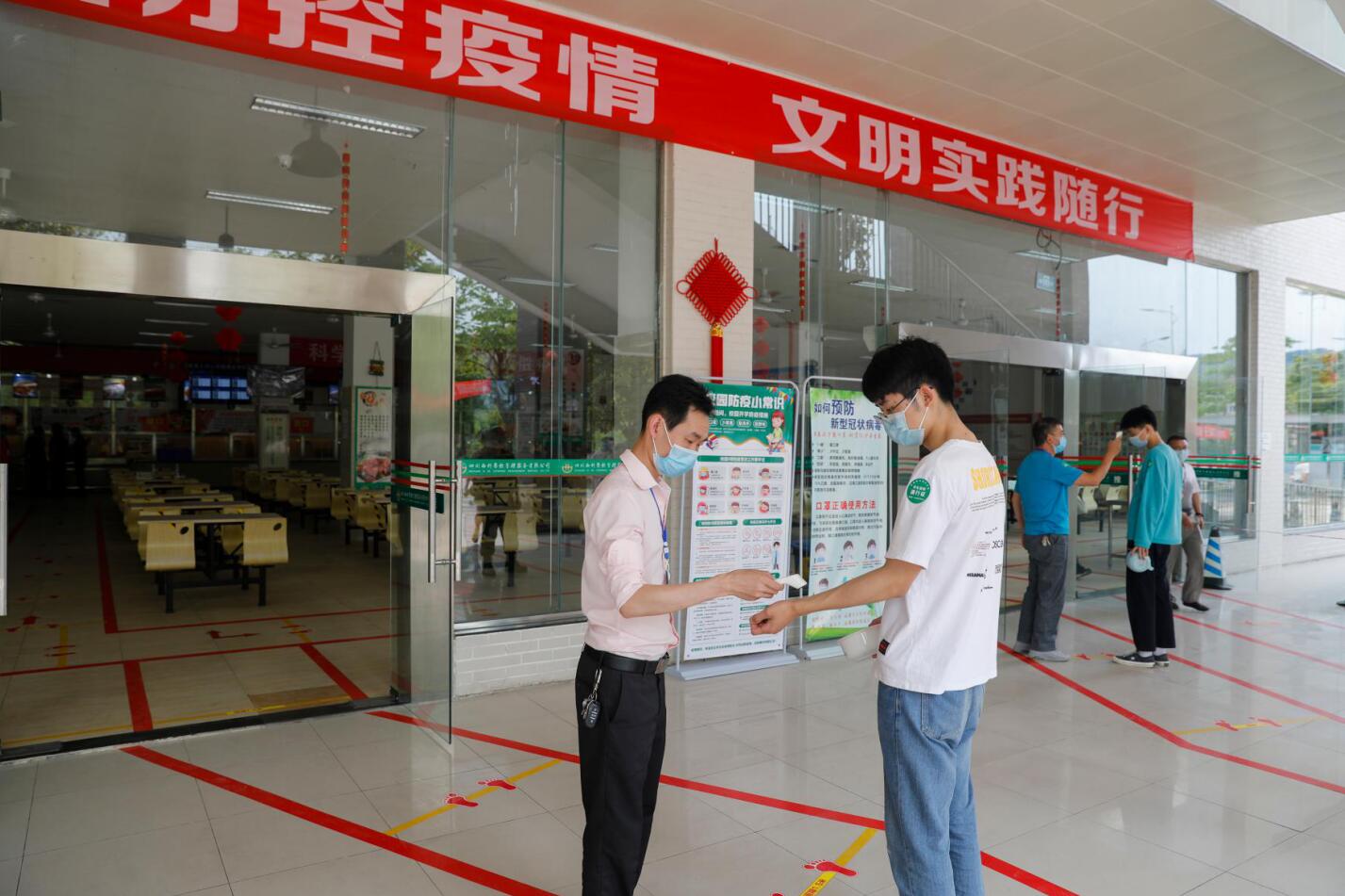 在体温检测区,詹娇娇老师说:“很开心看见学生返校,上了那么久的网课,终于能够面对面上课了!”