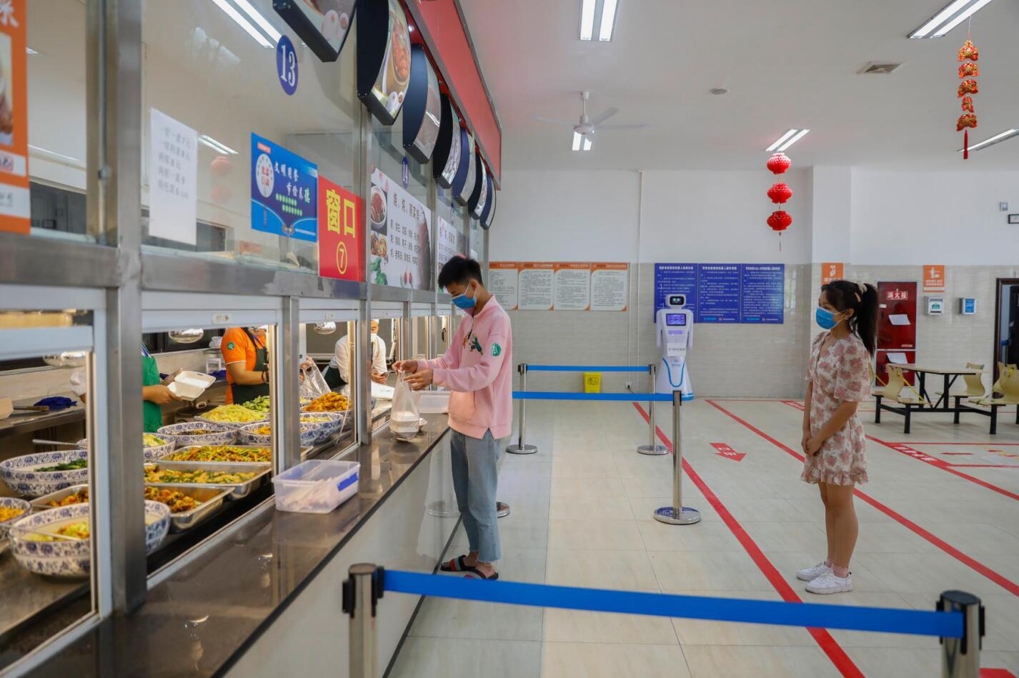 在学生食堂,体温检测、消毒洗手,一个都不少。就餐的同学说:“感谢食堂准备的可口饭菜,让我们有了家的感觉,学院的防疫措施也让我们感到很安心。”返校前,食堂抓实抓细疫情防控工作,精心设计菜谱,让同学们能在返校后吃到营养美味的套餐。