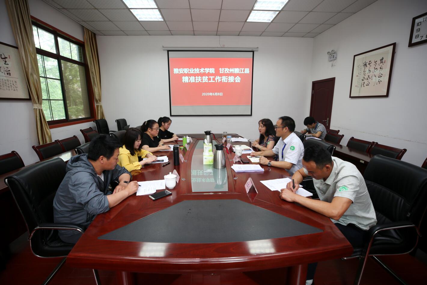 6月8日,甘孜州雅江县副县长石冬艳、县教体局局长尤黛楠等一行来院对接精准扶贫的相关事宜。双方在育才路校区B211会议室召开了帮扶工作衔接会。党委委员、副院长樊先茂主持会议,党委副书记付洪涛出席会议。