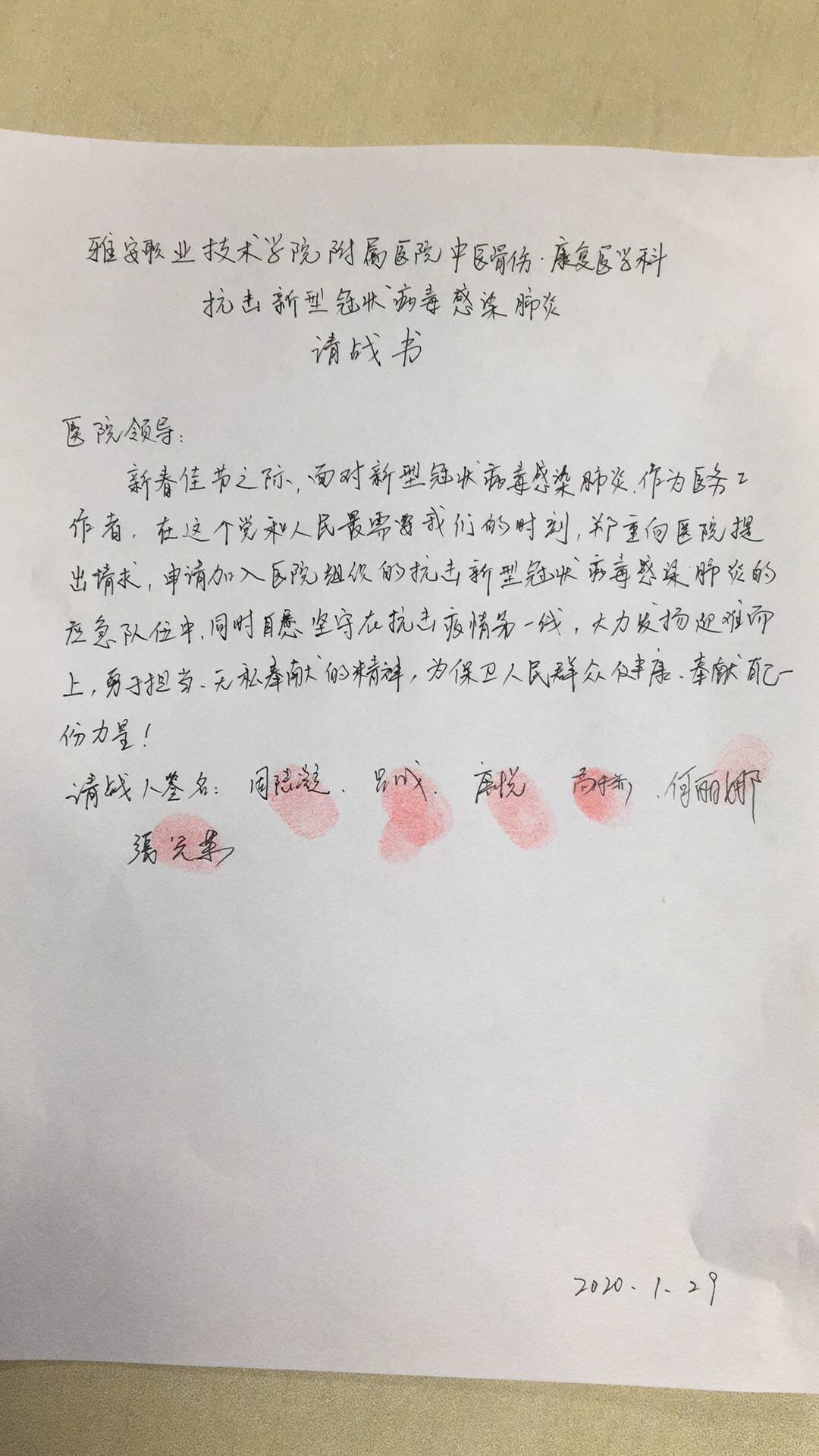 近日,新型冠状病毒肺炎疫情引发社会强烈关注,也时时牵动着每一位医务人员的心。连日来,beat365英国官方网站请战氛围热烈,附属医院医务人员、学院医卫类教师,甚至在校医学生都纷纷表达了自己心声,自愿加入防控疫情的一线工作,随时听候医院调遣,为保卫人民群众的生命健康贡献自己的一份力量。