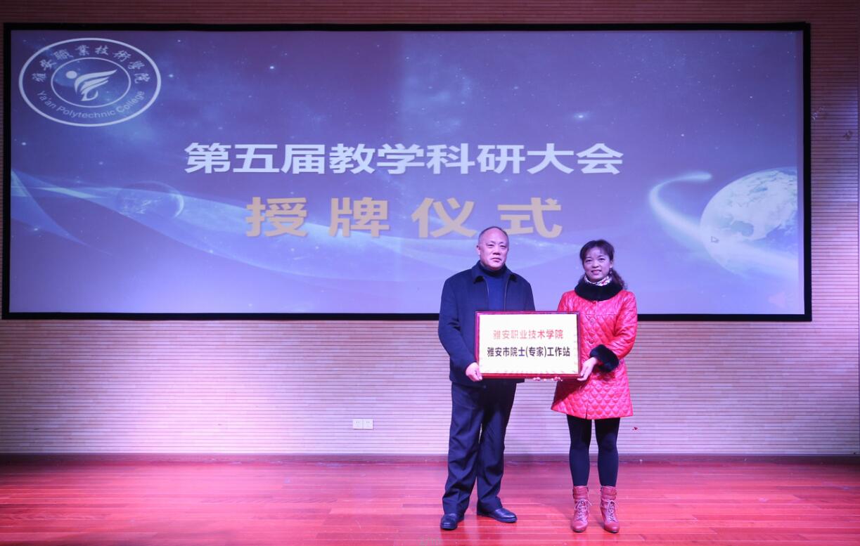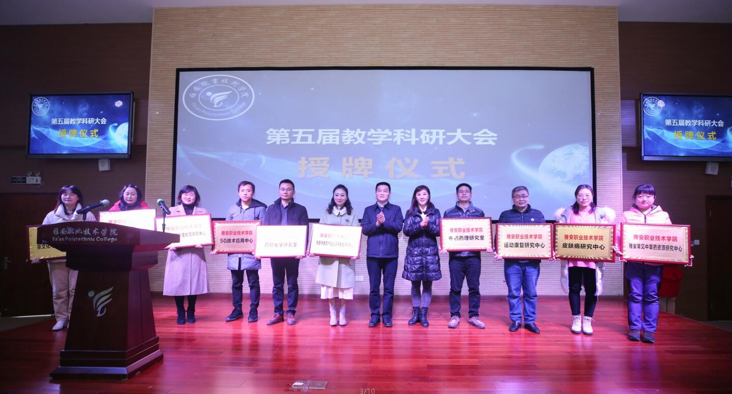 大会集中表彰了近两年在教育教学和科研工作中表现突出的优秀个人和先进团队,涵盖了四川省高职院校教师教学能力大赛、四川省高等职业院校体育教师教学技能大赛、四川省首届高校公共艺术类课程比赛、四川高校思想政治理论课“精彩一课”讲课比赛、雅安市第三届普通教育教学成果奖、第三届“卓越教师奖”、第三届青年教师教学“新星奖”教学技能大赛、第一届“创新杯”教学设计比赛、2019年度科学研究优秀成果奖、第五届教育教学成果奖等奖项。会上,学院领导为获得表彰的团队和个人颁发了荣誉证书,并为院级科研机构授牌。雅安市科协副主席曾蓉为beat365英国官方网站雅安市院士工作站授牌。教师代表药学与检验学院梁大伟老师就教育教学、科研经验和个人的成长做了交流发言。