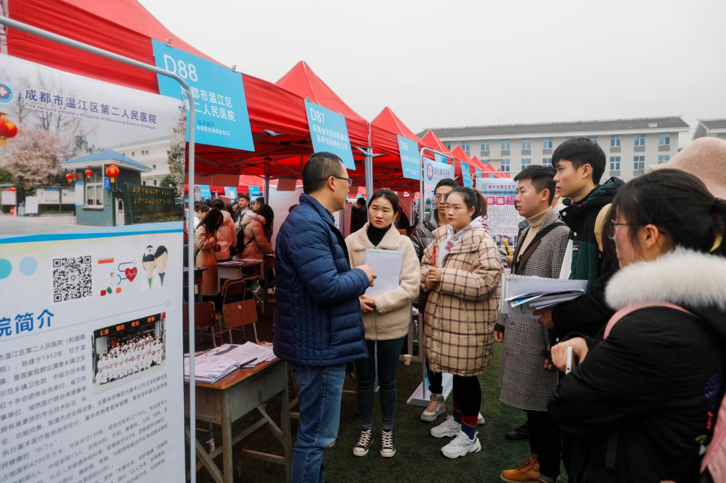 本次双选会共吸引了来自全国各地的450余家用人单位,其中公有制单位172家,提供就业岗位共计9500余个,涉及护理、临床医学、影像技术、药学、师范、机电技术等多个专业,约有2800名应届毕业生参会。本次招聘会分为上午大型现场招聘和下午专场招聘两种形式。上午各用人单位在现场招聘中与应聘毕业生充分交流、双向选择;下午的专场招聘中,用人单位或进行企业宣讲、或进行面试,让应聘毕业生能获得更多的就业机会。下午5点,本次双选会圆满结束。