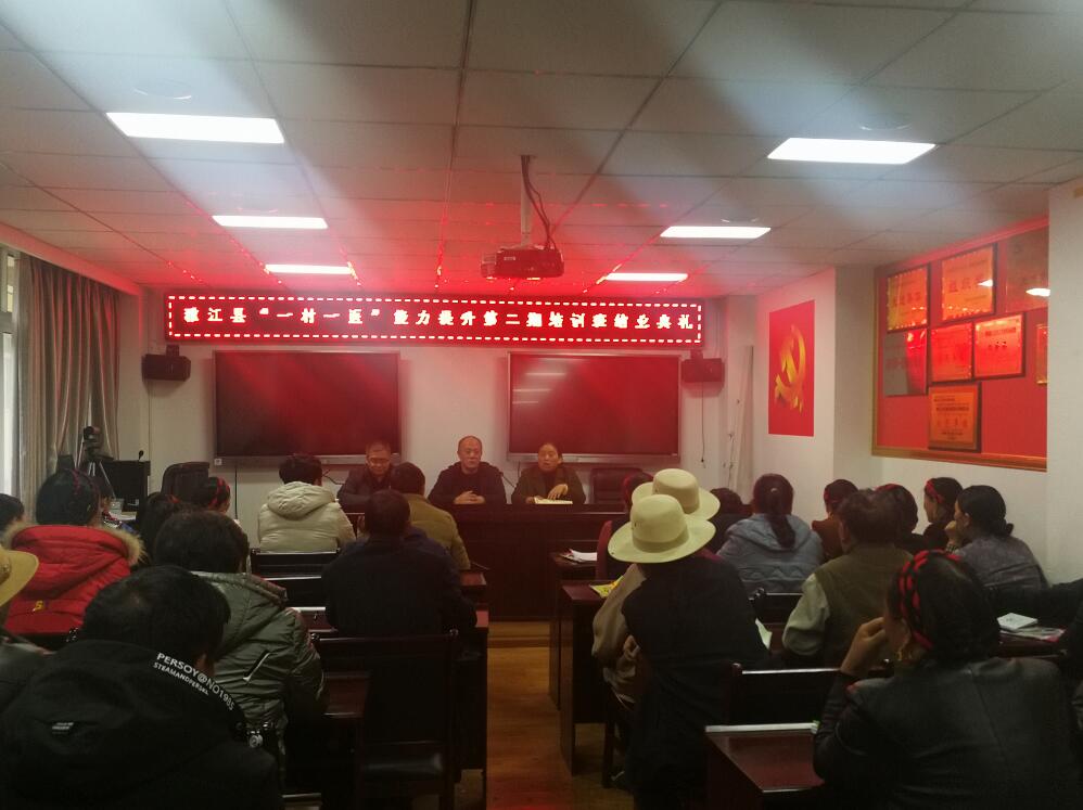 10月24日下午,学院帮扶甘孜州雅江县“一村一医”培训项目暨村医技能提升培训班结业典礼在雅江县卫健局举行。学院副院长樊正康、临床医学院(附属医院)副院长杨志伟、附属医院院长助理、医务科科长罗强、雅江县卫健局副局长刘英等出席结业典礼。