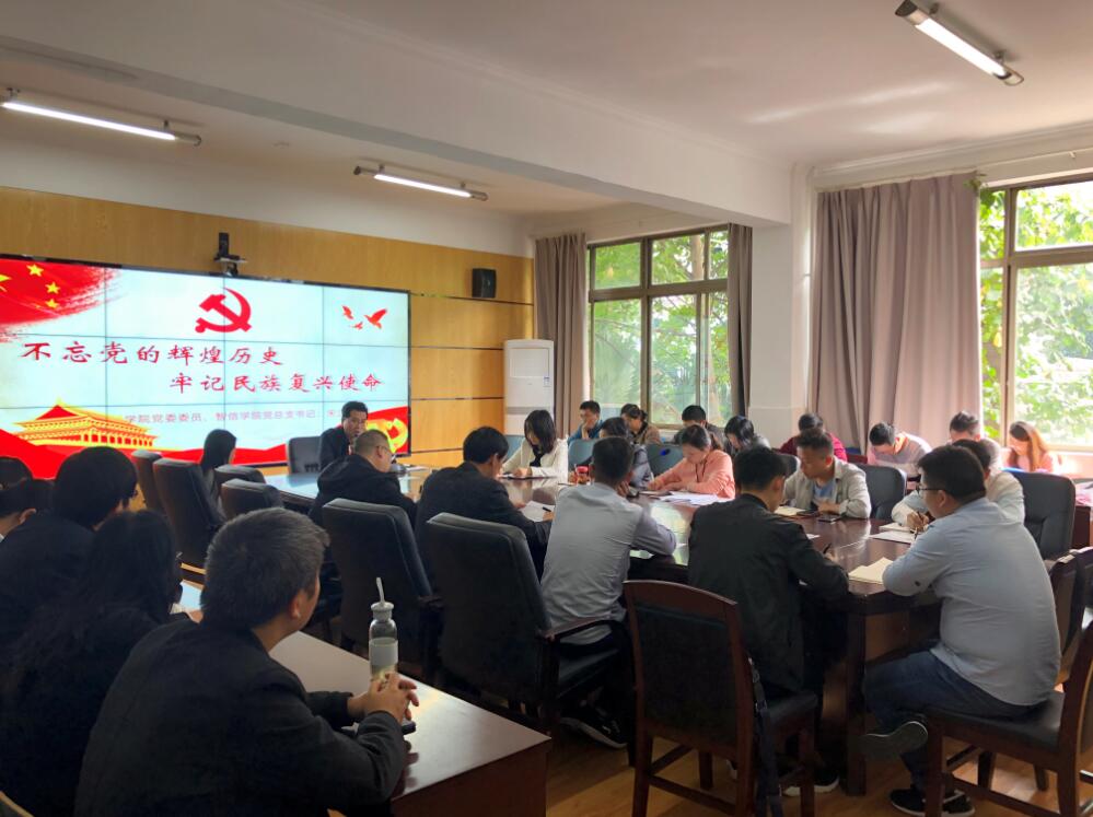10月17日中午,学院党委委员、智信学院党总支书记宋立智围绕“不忘初心、牢记使命”主题教育活动,以《不忘党的辉煌历史 牢记民族复兴使命》为题,在青年路校区B207会议室面向智信学院党总支全体党员教师讲授了一堂生动的党课。