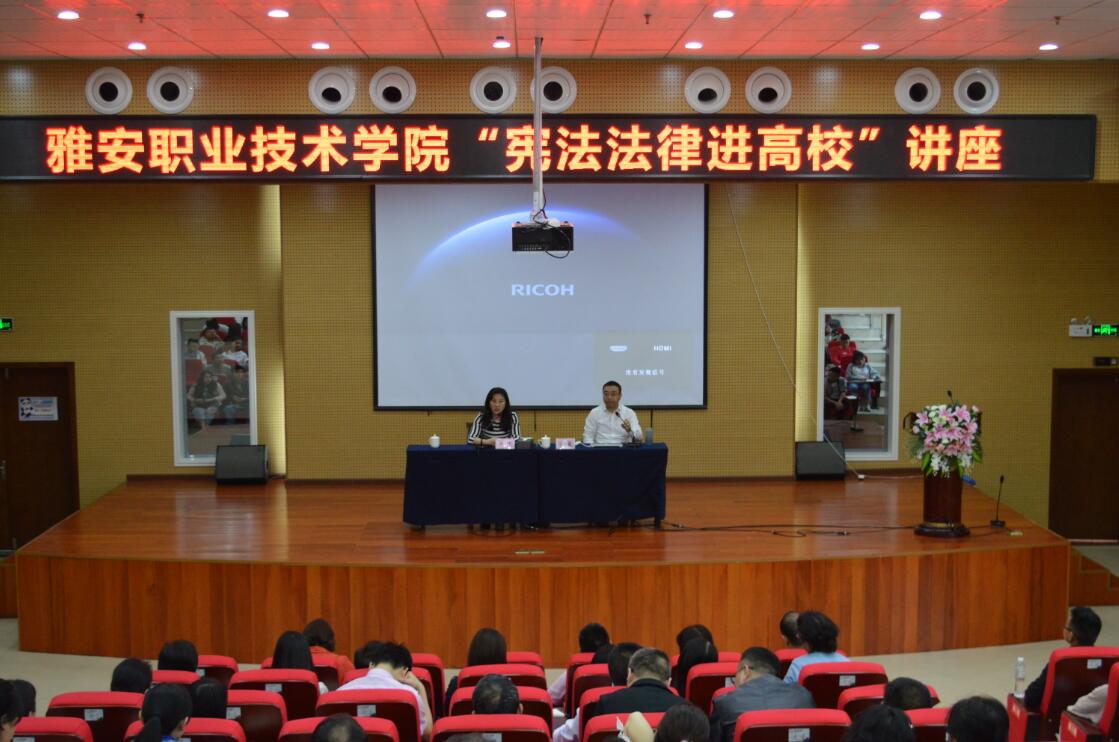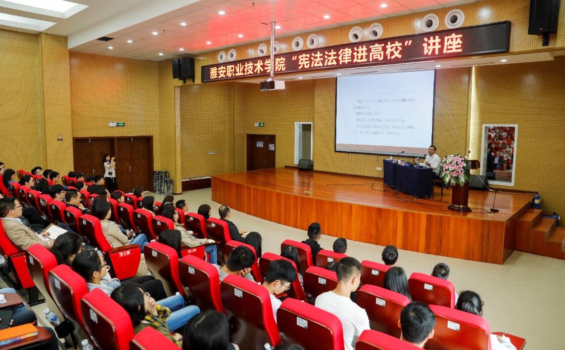 5月30日下午,雅安市“宪法法律进高校”启动仪式暨省宣讲团专家来院宣讲活动,在学院培训中心五楼博雅厅举行,市委常委、宣传部部长杨军,市委依法治市办常务副主任、市司法局局长王亚文,市教育局副局长许江涛,学院中层及以上干部,党总支(直属党支部)委员,团总支书记、副书记,学生代表近300人参加了活动。王亚文主持启动仪式。