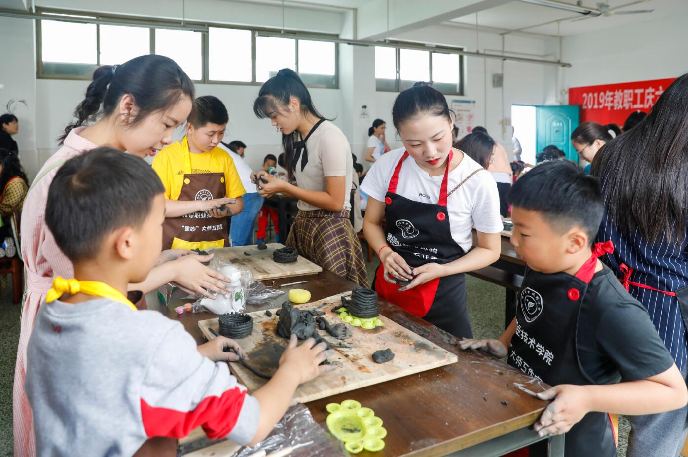 6月1日上午,由学院工会主办、师范学院联办的2019年教职工庆六一“彩绘石膏娃娃DIY”暨“黑砂艺术作品创意DIY”亲子活动,在学院青年路校区D303教室举行,党委副书记、工会主席付洪涛与来自全院13个工会小组的教职工及儿童100余人参加了此次活动。