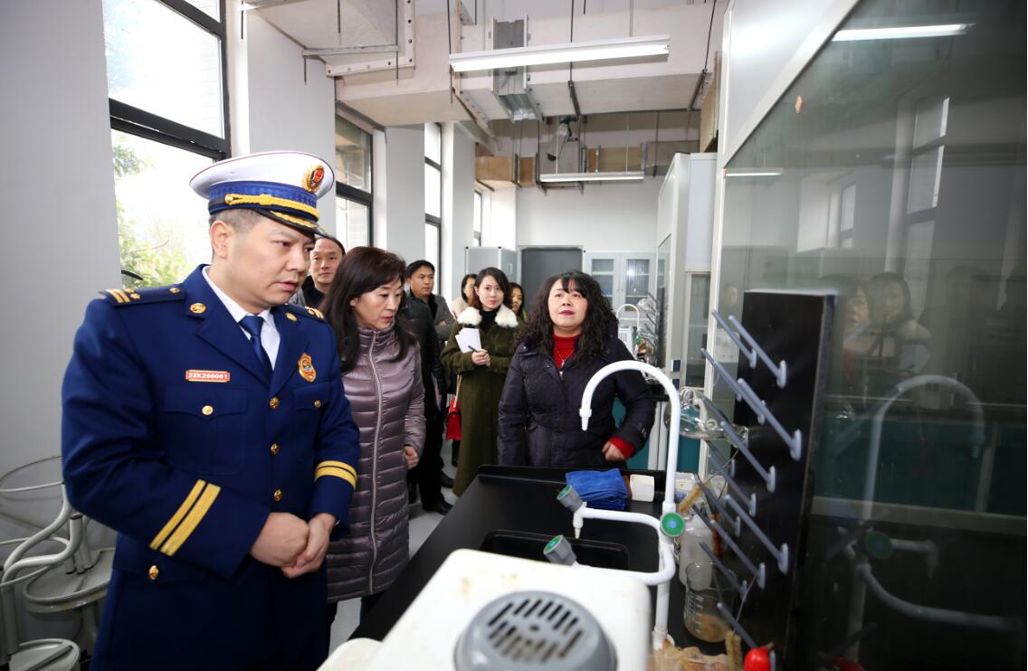 衡彤一行先后走进经开区实训服务中心危险化学品暂存室、药物化学实训室、中药炮制实验室、智能制造中心,每到一处,都详细询问各实验、实训室安全管理制度建立、落实情况,仔细检查消防设施配备是否齐全,运行是否符合要求,消防疏散通道是否通畅等。