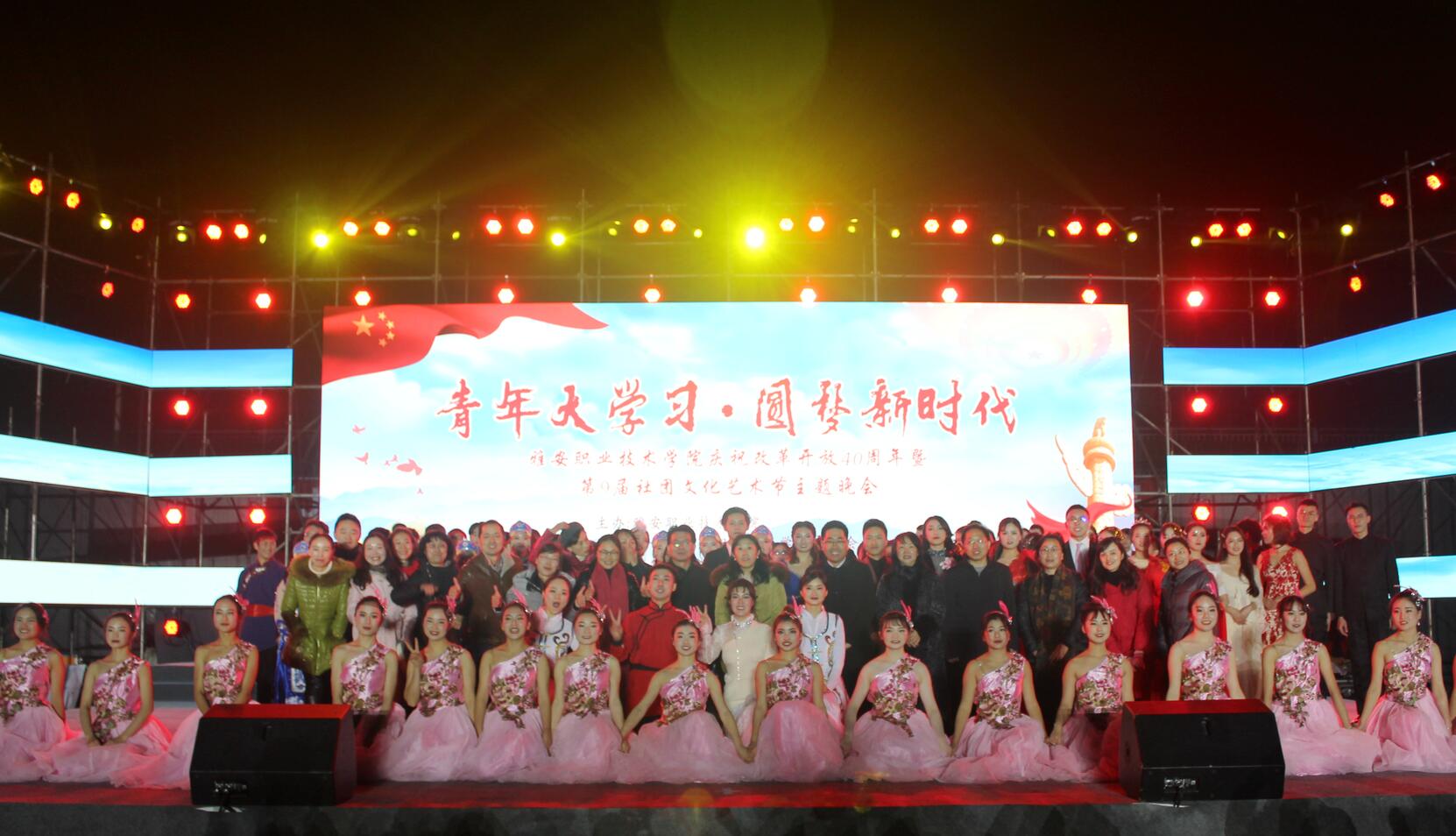 【本网讯】12月11日,由学院主办,院团委承办的“青年大学习,圆梦新时代”庆祝改革开放40周年暨第9届社团文化艺术节主题晚会,在青年路校区足球场举行。学院院长石静,学院党委副书记付洪涛等学院领导、各院(部)主要负责人、团总支书记与全院5000余名学生代表一同观看了演出。共青团雅安市委书记王惠明也莅临现场观看演出。