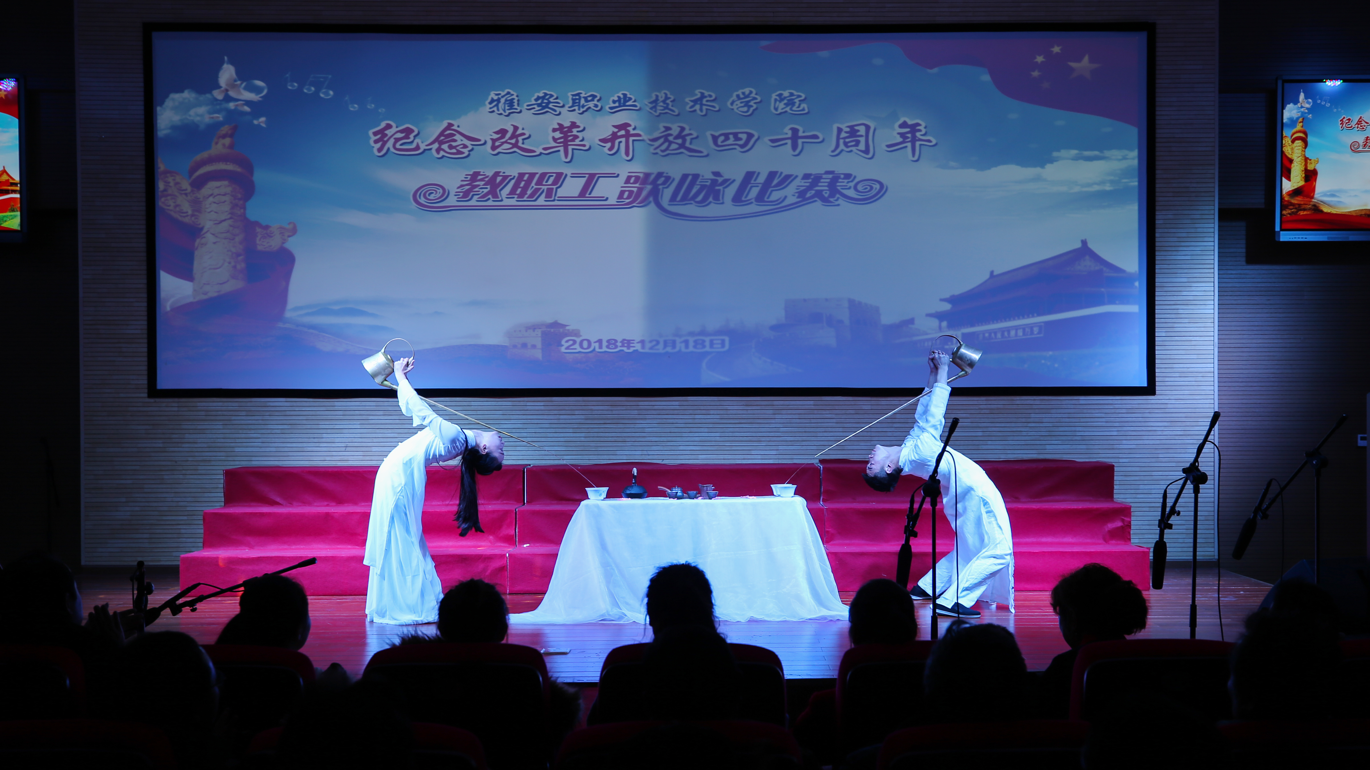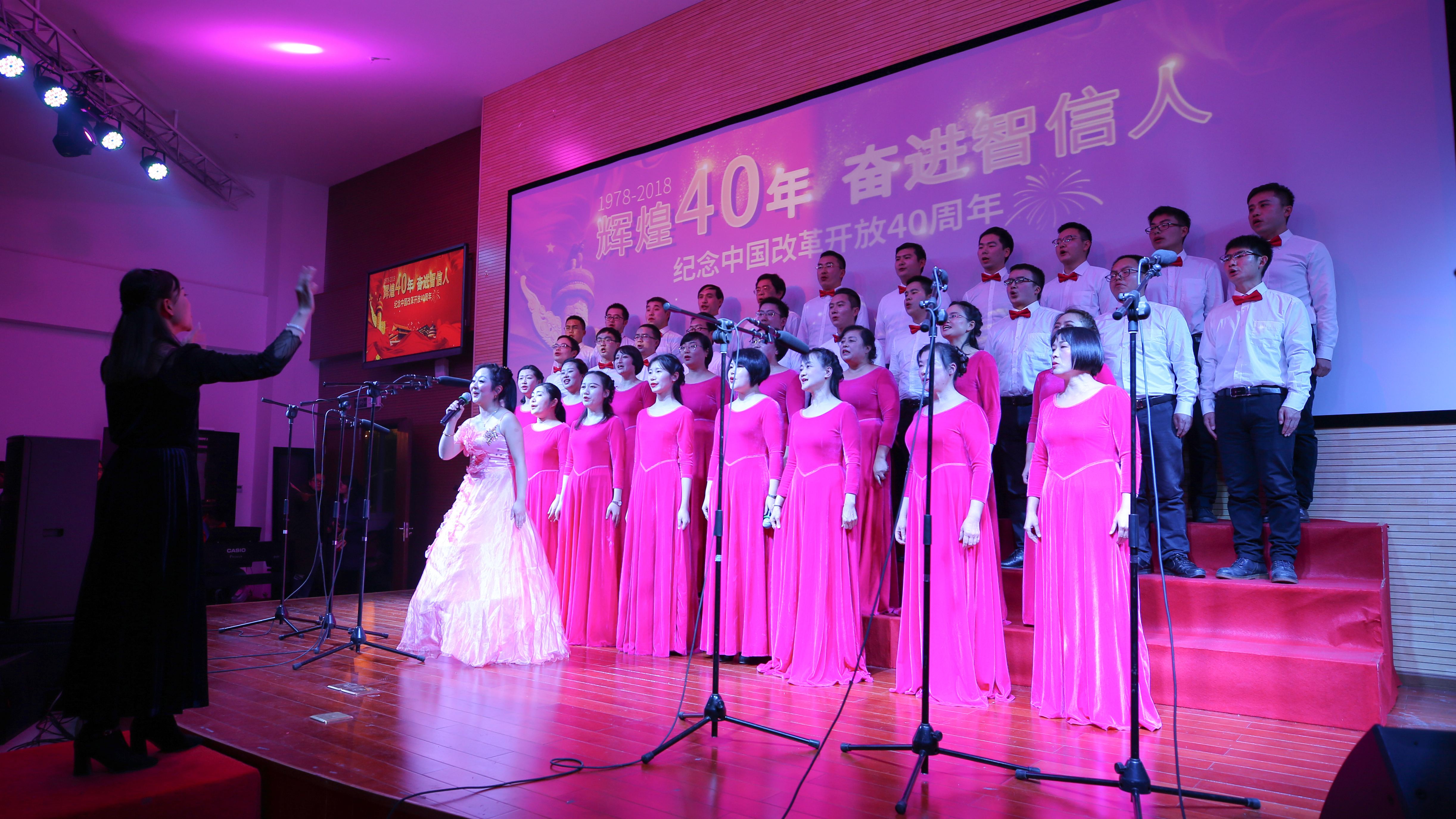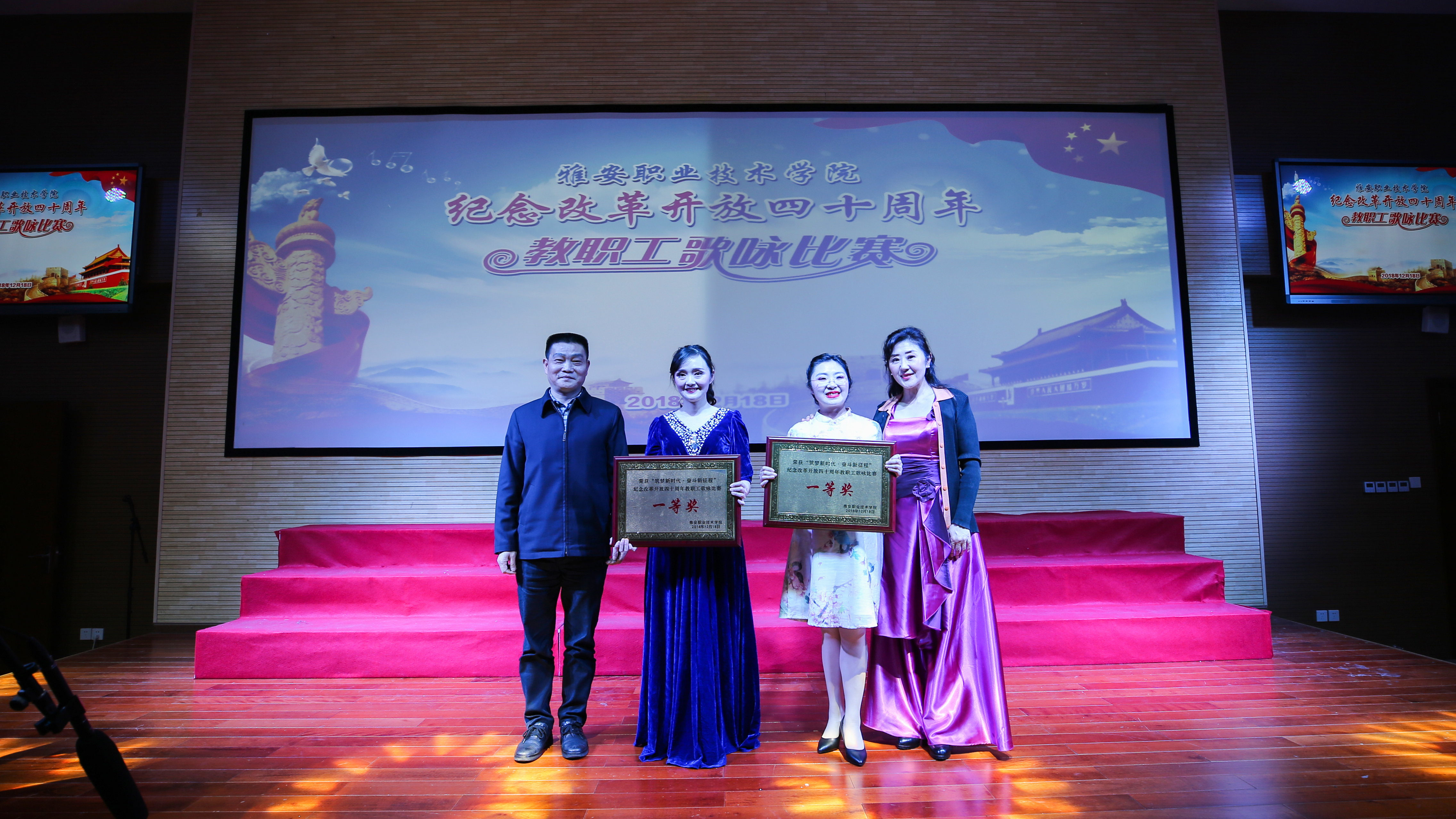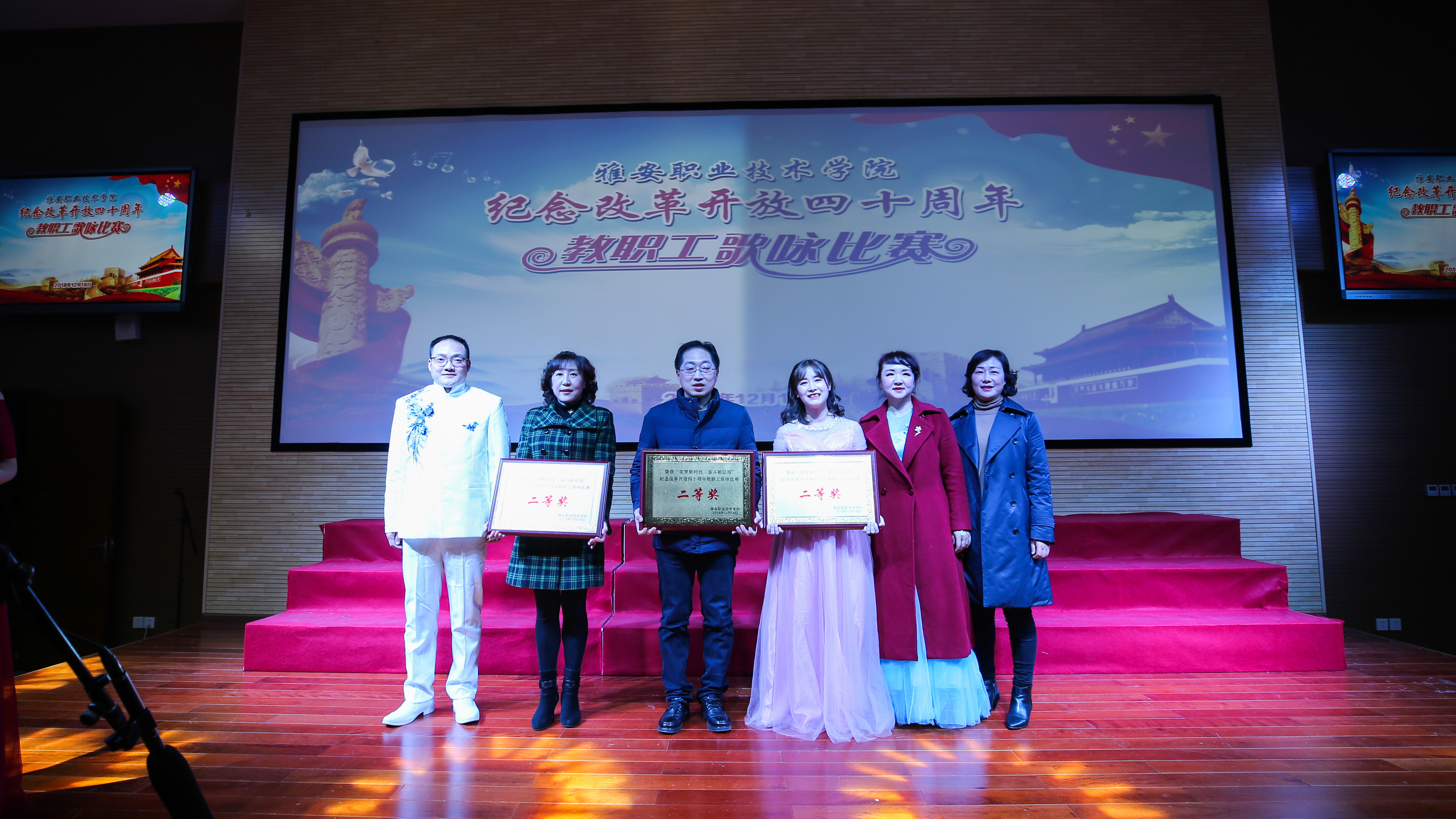 【本网讯】12月18日,beat365英国官方网站“筑梦新时代•奋斗新征程”庆祝改革开放四十周年教职工歌咏比赛在青年路校区实验实训楼二楼多功能厅隆重举行。学院党委书记李春模、院长石静等院领导莅临现场观看并参与演唱,各党总支、工会组成10支代表队、360余名教职工参加了演唱活动。比赛邀请了中国音协会员、四川省音协理事、雅安市音协主席李宣康,中国音协会员、四川省音协理事、雅安市音协副主席吕志健等5位专家担任评委。
