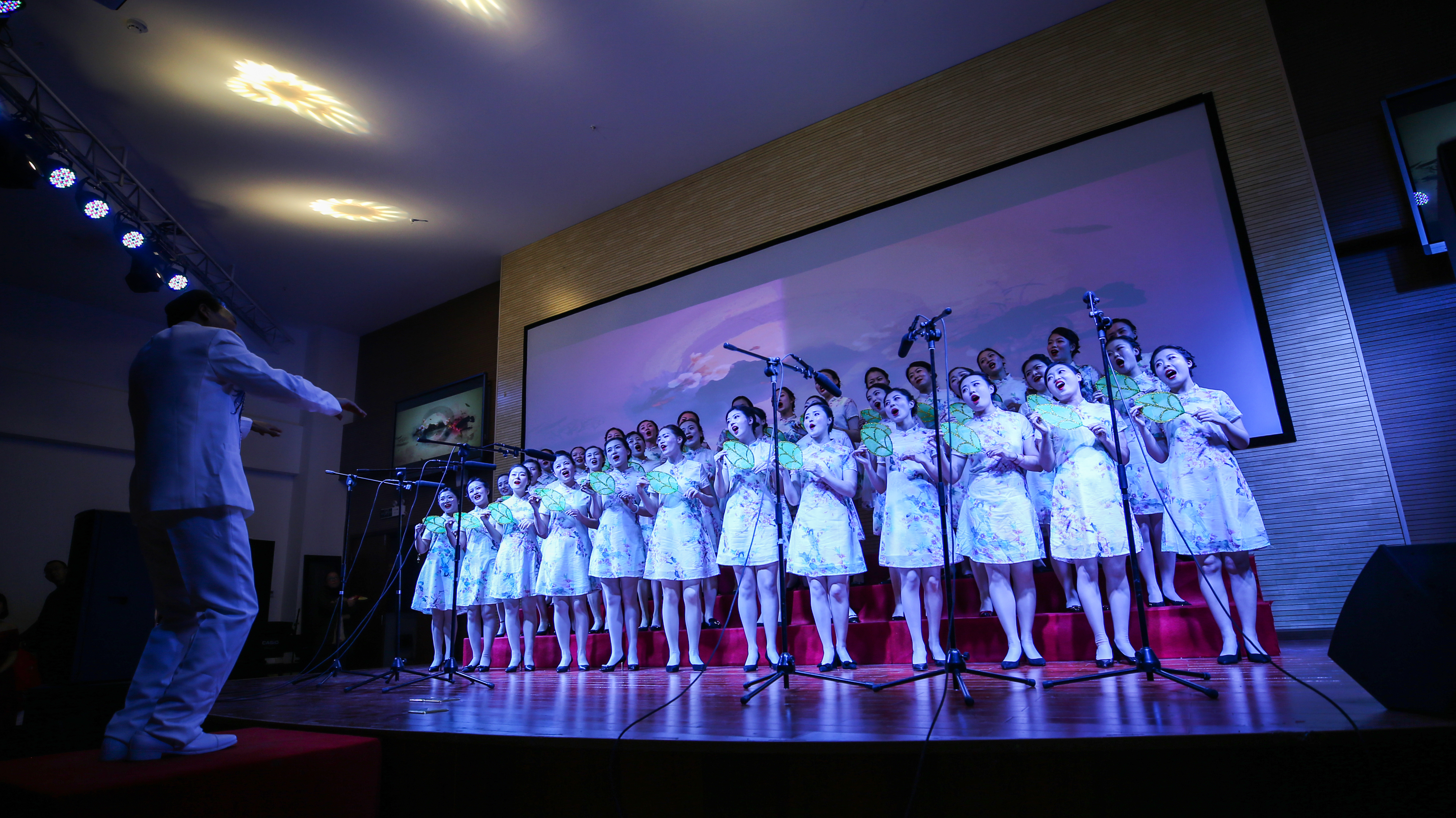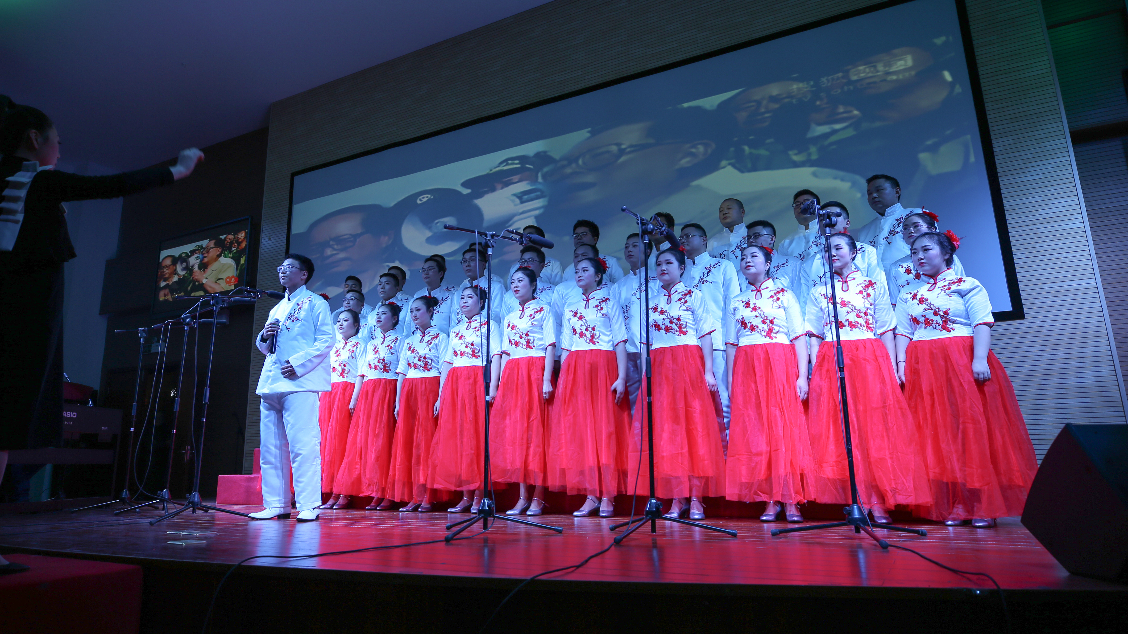 比赛在师范学院带来的无伴奏合唱《夜空中最亮的星》优美歌声中拉开帷幕,药检学院队演唱的《绒花》、临床医学院(附属医院)2队演唱的《江山》和机关后勤2队包含深情演唱的《歌唱祖国》点燃了教师们的爱国热情;智信学院队带来的《在灿烂的阳光下》、机关后勤1队带来的《走向复兴》、经管思政队带来的《唱支山歌给党听》、附院1队带来的《彩云追月》、护理学院带来的《一带山茶一路飘香》歌曲欢快而又富有情感,演唱者激情澎湃,博得现场观众的热烈掌声。退休人员合唱队30余名老教师带来的《唱支山歌给党听》让大家感受到老同志们爱党爱国爱校的深切情怀。在合唱中师生穿插表演的节目茶技《凤求凰》、古筝伴奏独舞《红颜依旧》、二重唱《东方之珠》、舞蹈《水墨上里》等展现了师生的多才多艺,将晚会推向高潮。