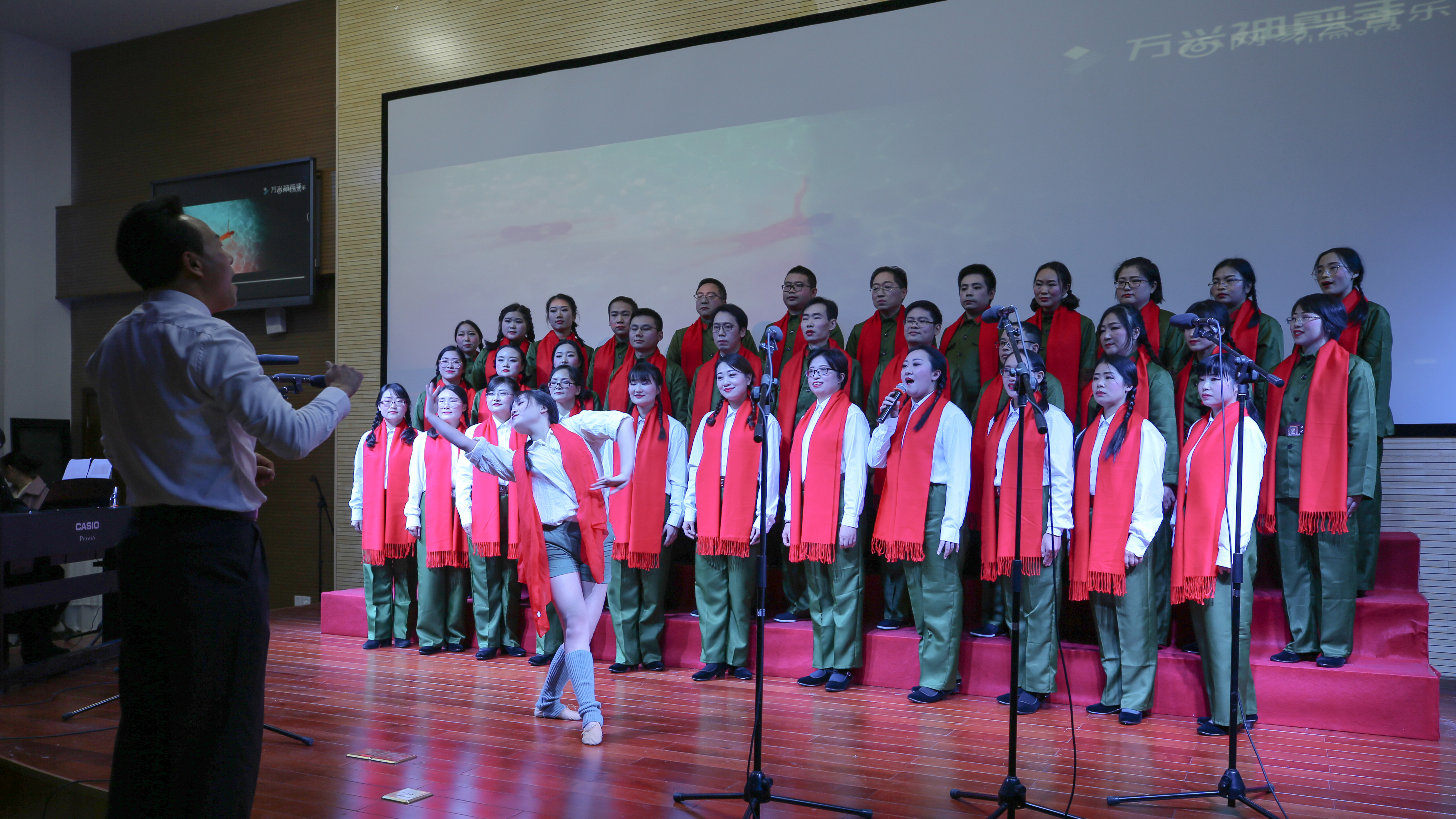 整个晚会,参赛教职工满怀激情,用歌声和舞蹈表达出对祖国、对党的热爱和无限忠诚和深厚情怀。各参赛队整齐的阵容和意气风发的表演,展示了我院教职工奋发有为、与时俱进的精神面貌,展现了全体教职工建功新时代的信心。