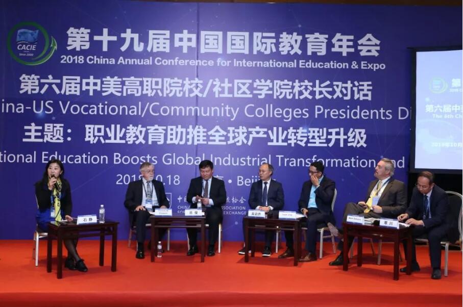 10月18日在第六届中美高职院校校长对话板块,职业教育助推全球产业转型升级的主题中,石静主持了职业教育服务产业转型升级的专题研讨。研讨嘉宾来自重庆工程职业技术学院、美国的海湾州立大学、硅谷圣马特奥三学院等中美两国职业学院的负责人以及全球职业质量保证首席执行官等。专题研讨主要从6个方面展开讨论:围绕如何在高职院校培养人才,支持和引领区域产业的高质量发展、国际职业教育如何引领产业转型升级、如何打造一支能预测行业发展的教师队伍、在人工智能时代的新的人才培养模式、高职院校新课程改革的思路以及未来创新创业教育的新途径。