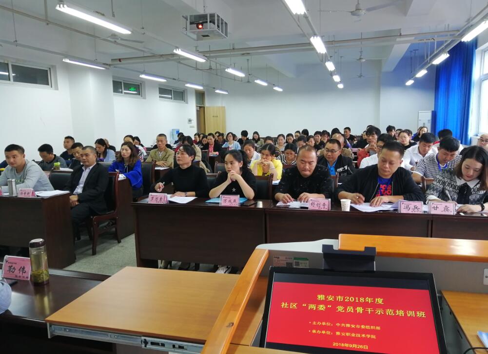 【本网讯】9月26日,学院承办的 2018年雅安市社区“两委”党员骨干示范培训班在青年路校区开班。市委组织部党教中心副主任钟健、学院有关负责同志,以及来自来自六县两区的80名学员参加了开班式。