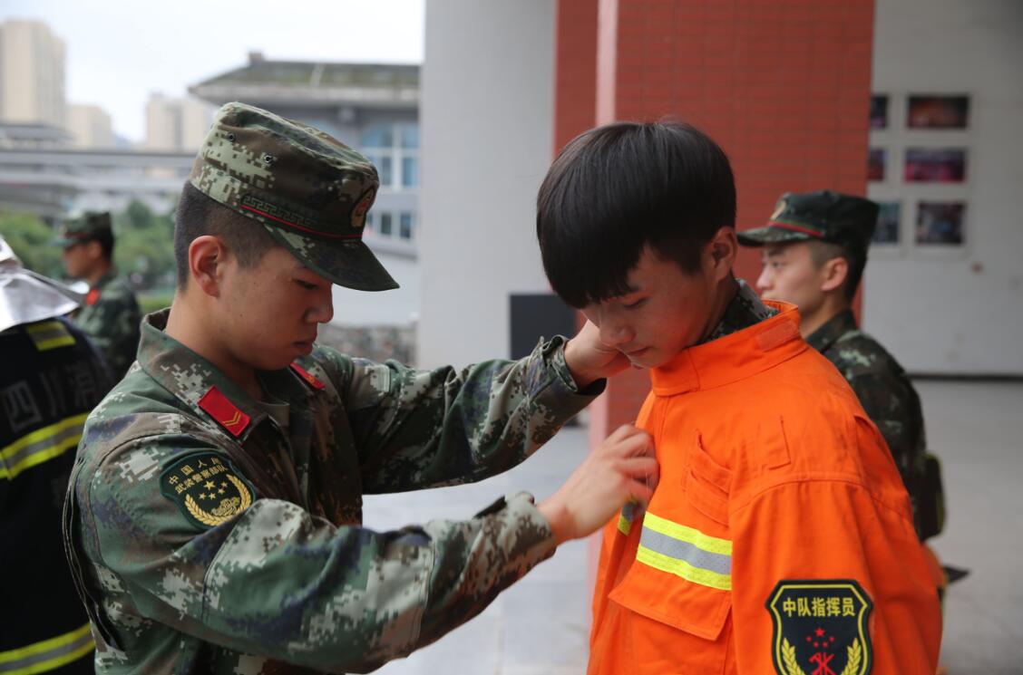 雅安市消防支队的消防官兵现场为同学们进行了消防知识培训,主要讲解了电气火灾的知识防范,发生火灾时如何报警、如何扑灭初级火灾、自救逃生的方法、熟悉疏散路线、ABC干粉灭火器、消火栓的使用方法及学习穿戴专业消防战斗服,并向学生展示了消防特勤器材。