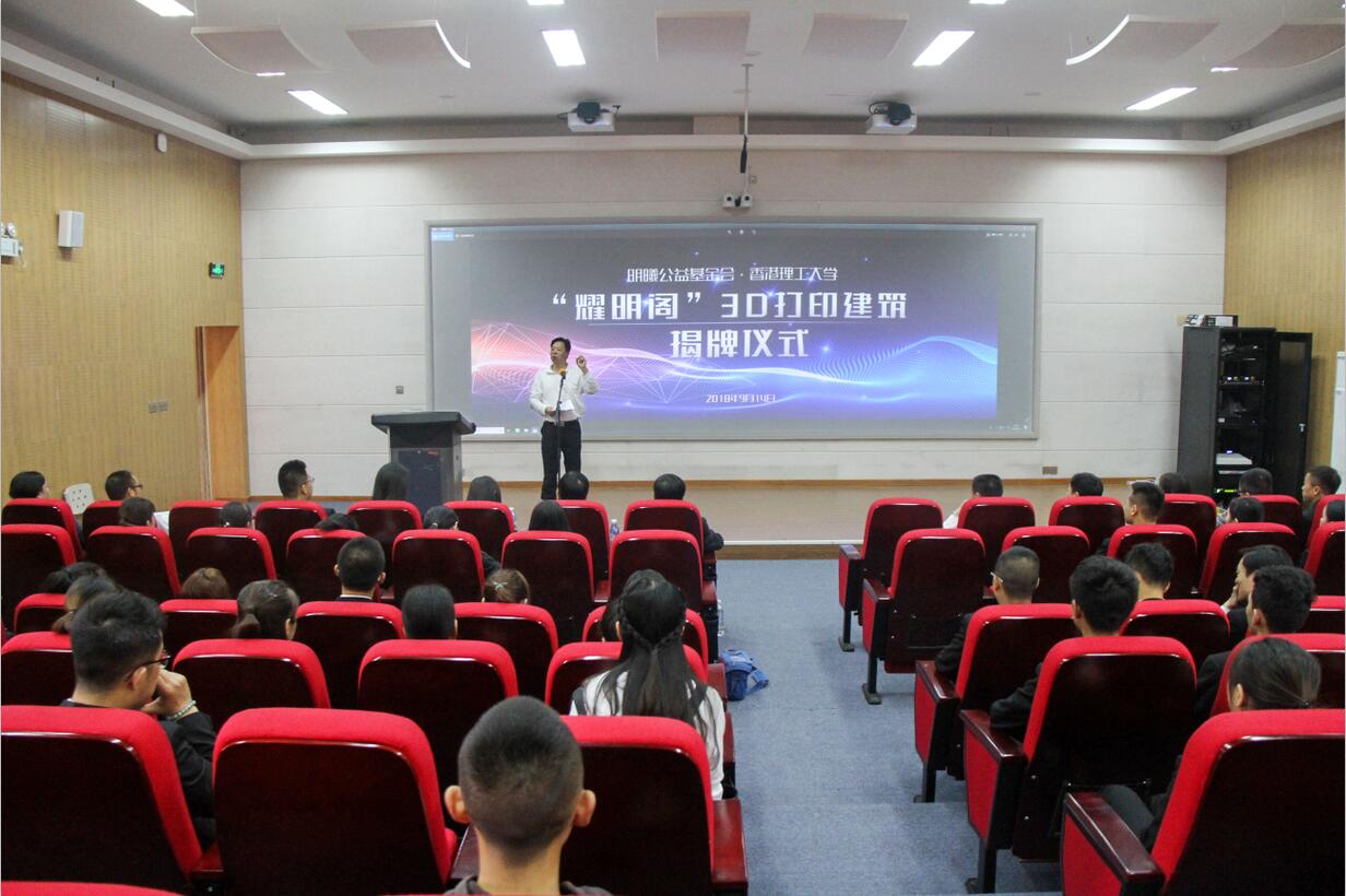 李春模在致词中代表学院向香港理工大学、明曦公益基金会和雅安市委市政府对“耀明阁”3D打印建筑项目的支持、关心表示感谢。他表示,该项目的落成不仅为学院师生带来了3D打印建筑的体验,更是架起了学院与香港理工大学、与明曦公益基金会之间联络的桥梁,加深川港高校与公益组织之间的交流与沟通与合作,学院将努力为川港学生搭建交流平台,促进学术与文化交流。