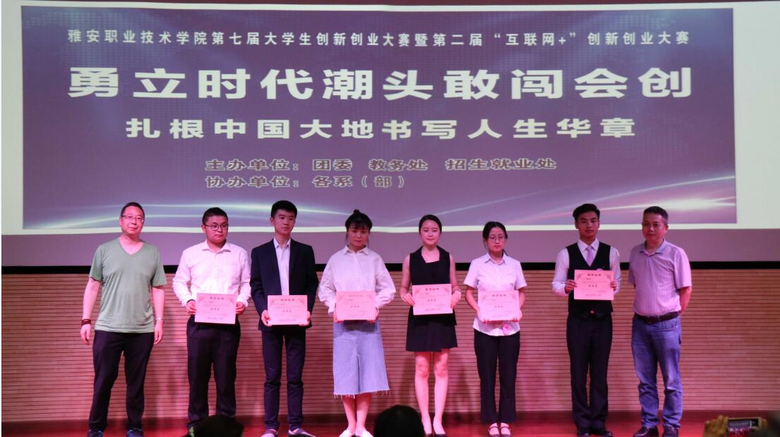 【本网讯】6月12日,由院团委、教务处、招生就业处主办,各系(部)协办的beat365英国官方网站第七届大学生创新创业大赛暨第二届“互联网+”创新创业大赛在青年路校区实验实训楼二楼多功能厅举行。本次大赛邀请共青团雅安市委副书记陆艳、四川省大学生创新创业培训中心导师团副秘书长毕鹏森、教育部全国万名优秀创新创导师翟刚以及雅安市就业专家团及导师团成员黄晞、雅安市就业局黄莉共5人组成专家评审团,党委委员宋立智以及各系部主要负责人作为嘉宾出席。以“勇立时代潮头敢闯会创,扎根中国大地书写人生华章”为主题的本次大赛吸引了大量的同学前来观摩,现场座无虚席。