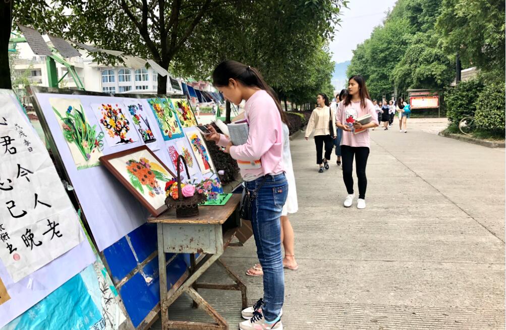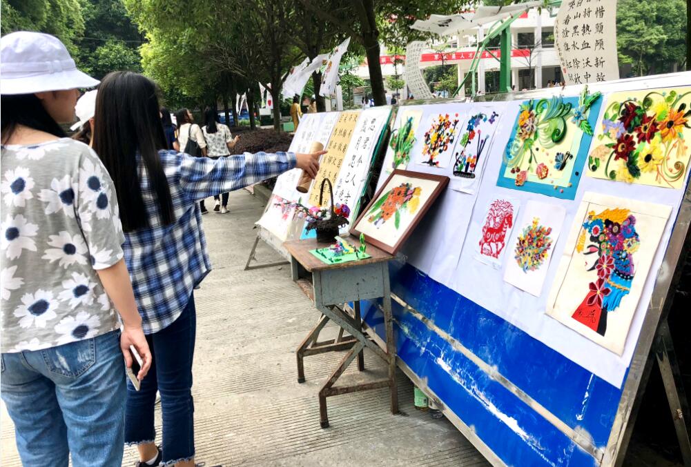 【本网讯】5月23日,在青年路校区食堂门口,院团委举办了“美在新时代”社团文化艺术节作品展。
