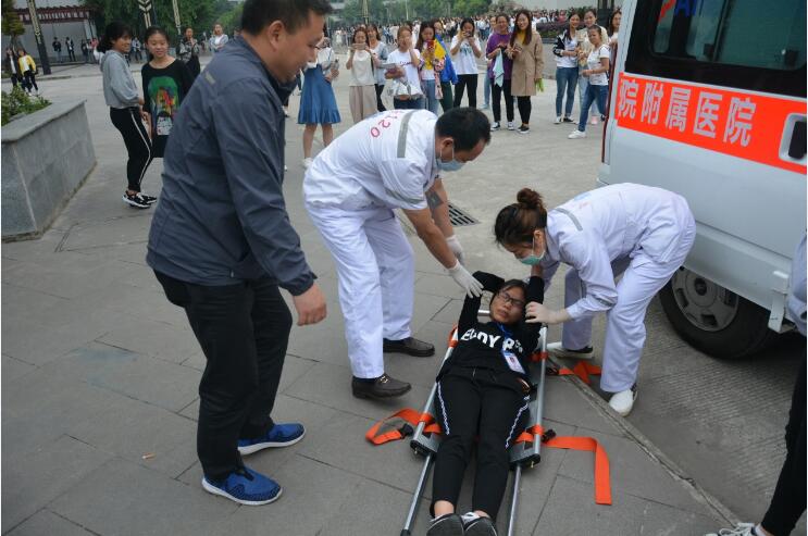 应急疏散救援完成后,消防官兵对全体师生进行了灭火器使用知识培训、初期火灾扑救常识普及,并让师生亲身体验了整个初期火灾扑救全过程。最后,学院附属医院医生针对应急救护常识为师生作了讲解。
