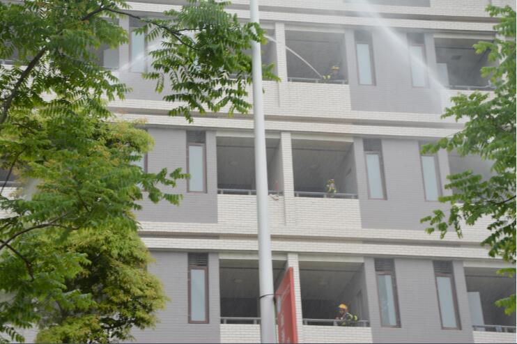 本次演练设青年路校区和经开区校区两个场地同时进行。下午14:30分,防灾减灾应急疏散演练正式开始,全体师生听到疏散指令后,按照事先设定的疏散路线,在各楼层指导老师的带领下,快速有序地撤向安全地带,“被困”人员在窗口挥舞毛巾发出求救信号。学院义务消防队员快速反应,设立安全警戒标志,进入火场进行初期火灾扑救和救援。