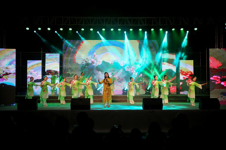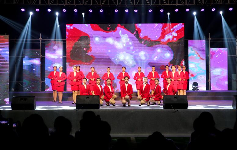 引人入胜;由学院教师王昌宇作曲、王珏玉演唱的歌伴舞《茶语芳菲》,仿佛再现了青衣江畔灵动的歌谣、蒙顶山巅阵阵的茶香;歌伴舞《康巴姑娘》用欢乐的歌舞将观众带入辽阔的草原;《大山之教》展现了支教教师对教书育人的热爱和对孩子们的关心,这感人的场景,重重地敲击了我们的每个人的心灵,使大家陷入了沉思;一个古老民族用生命激情演绎的歌舞《彝人部落》带来了彝家独有的风土人情,使观众欢呼雀跃,掌声络绎不绝,将整个晚会推向高潮。晚会最后,歌伴舞《共筑中国梦》融情于景,过去的五年我们砥砺前行,未来五年不忘初心,携梦飞翔。