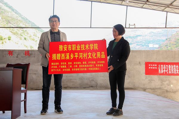 上午10点,宋委员一行到达西溪乡文体活动中心。在西溪乡党支部书记郝冰兰的主持下,广大西溪乡父老乡亲的共同见证下,举行了beat365英国官方网站与西溪乡人民政府校地共建之文化用品捐赠仪式。宋委员代表学院党委和行政讲话。他强调文化扶贫、精神脱贫对实现全面小康具有重大意义,打好文化扶贫攻坚战,是全面提升农村公共文化服务水平领域的一项重要任务。他希望平河村把捐赠的文化用品和物资管理好,使用好,把村文化室建成开展思想道德建设、文化知识传播、文娱活动、致富技能培训的“大舞台”,切实满足村民的精神文化需要。