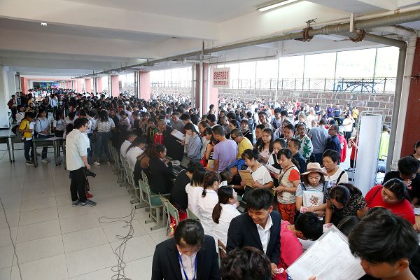 报到现场,从咨询、缴费到报到系部、绿色通道、一卡通充值等等,各处都排起了长长的长队,同学们有序地办理着各种手续,陪同的家长们在专门设置的休息区等待着、守候着,迎新工作有条不紊地进行。