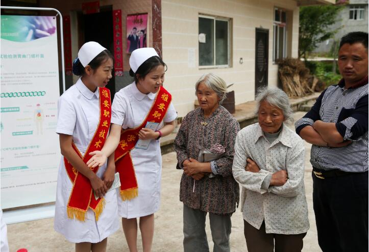 学院附属医院组织的外一科、外二科、内科、皮肤科、儿科、中医骨伤康复科等科室的8位同志组成的医疗志愿服务队,一到村里迅即展开工作,吸引了不少村民前来健康咨询和疾病检查。医生们耐心地为村民解答疑问、诊治,护理系的2名学生志愿者为行动不便的老年人做好引导和搀扶,发放健康知识宣传资料。此次活动共接受健康咨询50余人次,义诊40余人,发放膳食平衡宣传单、糖尿病防治宣传单、冠心病防治宣传单等资料300余份。医疗义诊服务活动得到了村民的欢迎和认可。