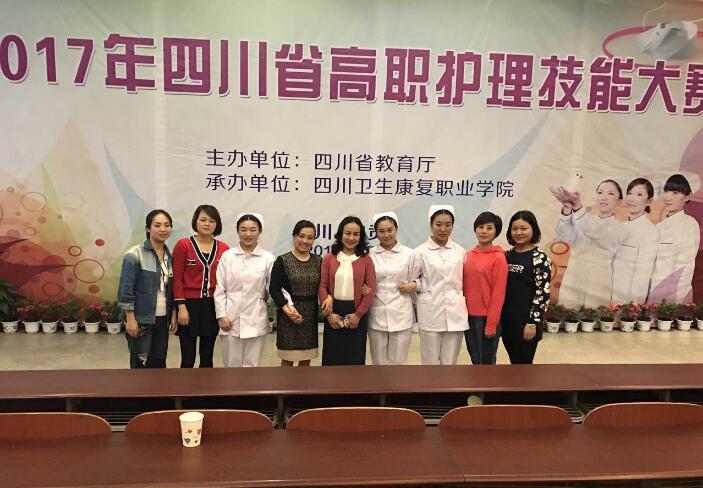 【本网讯】2017年4月8日,由四川省教育厅主办的“2017年四川省高职护理技能大赛”在自贡市四川卫生康复职业技术学院举行,我院护理系师生一行9人在王静主任的带领下,参加了本次比赛。