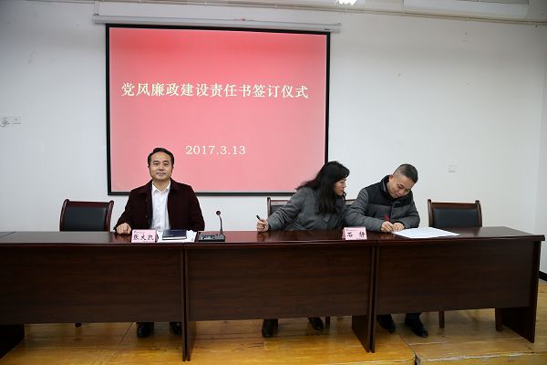 【本网讯】2017年3月13日下午,学院党委组织召开党委中心组(扩大)学习会。会上,学院党委书记与学院领导班子成员,党委书记及院长与13个党支部及各系(部门)负责人、重点岗位等关键人员签订了2017年党风廉政建设责任书。