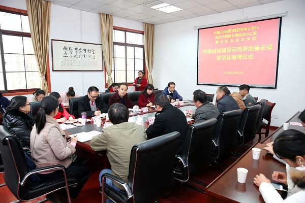 最后张大凯强调指出,推进诚信建设示范基地要明确各方职责,建立协调会联席机制,明确专人负责,定期研究工作,制定工作目标和细化要求。他说学院把《现代征信学》列入大学生选修课程,在条件成熟时纳入经济会计等相关专业课程,是银校合作、校地合作和大学生思想政治教育的一种创新之举,为我院开展诚信教育提供了很好的平台和机会。他要求学院相关职能部门及系部要切实负起责任,进一步做好诚信宣传教育的长效机制建设,不断深化青年学生养成教育及诚信教育,共同推进优良校风和良好社会信用环境的形成。
