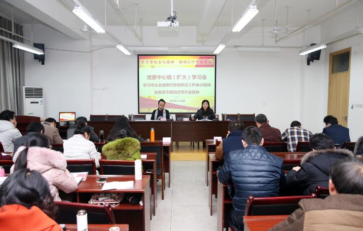 【本网讯】12月26日下午,学院党委在青年路校区图903会议室召开中心组(扩大)学习会,学习传达全国高校思想政治工作会议精神、雅安市第四次党代会精神。党委中心组成员、中层干部参加了会议。党委书记张大凯主持会议。