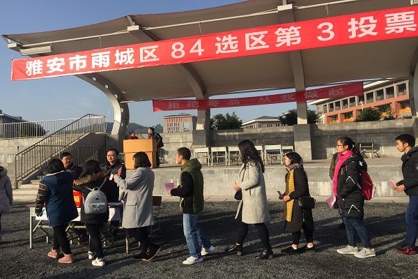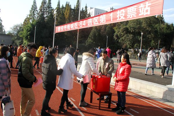 我院为第84选区,该选区涵盖了市教育局机关、市招办、省档案校、雅安中学、雅安电大等单位,共设有5个投票站,我院作为84选区选民最多的单位,设了其中的3个投票站,其中,育才路校区投票站为84选区的第一投票站,也是中心投票站。市教育局党委书记、局长赵敏作为第一投票站执行主席主持了投票工作,市教育局党委委员、副局长姜建平,市教育局党委委员、纪委书记王杉等也在该投票站参加了投票。在投票中,师生选民们认真行使法律赋予的民主权利,整个选举过程严格按照程序井然有序的进行。
