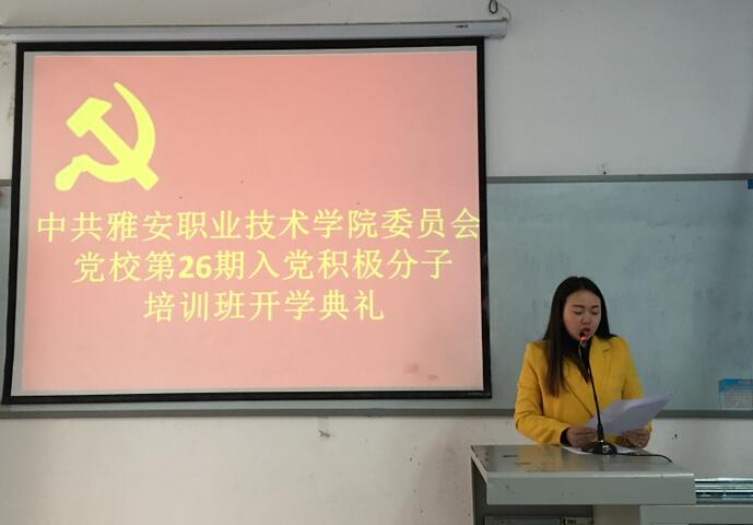 【本网讯】11月1日下午1点半,学院党校第二十六期入党积极分子培训班开班典礼在青年路校区图附101多媒体教室举行。 党委组织部部长、人事处处长夏安琼,党委组织部副部长、人事处副处长代英,各系党支部书记、学院党委组织部李闵、杨梅老师和79名学员参加了开班仪式。开学典礼由杨梅主持。