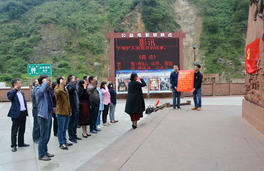 【本网讯】为纪念中国工农红军长征胜利80周年,重温革命历史,弘扬长征精神,我院师生开展了系列纪念活动。10月18日,学院党委副书记付洪涛、学院党委委员副院长樊先茂带领组织宣传部党支部、办公室党支部教职员工前往芦山县4•20芦山强烈地震纪念馆、宝兴县红军长征翻越夹金山纪念馆参观学习,重温入党誓词。