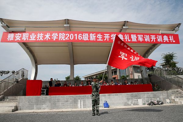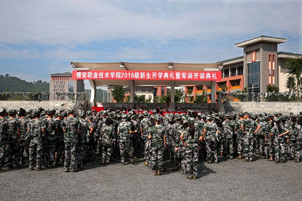 【本网讯】9月9日上午,学院分别于青年路校区、经开区实训与服务中心举行了2016级新生开学典礼暨军训开训典礼。学院党政领导,各职能部门、各系负责人及承担本次军训的来自成都市正光青少年军训基地的总教官肖麟出席了典礼。