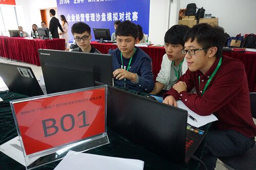 本次会计技能大赛设会计手工与信息化业务处理比赛,企业经营管理沙盘模拟对抗赛两个分赛项,分别以学校为单位组队报名参赛。其中,成都职业技术学院等49所院校参加了会计手工与信息化业务处理比赛,成都纺织专科学校等37所院校参加了企业经营管理沙盘模拟对抗赛。参赛队伍和参赛人数都为历年之最。经过两天紧张的角逐,我院由2014级会计电算化专业学生蒋联联、周露、刘冰茹、罗小强和由2014级物流管理专业学生康亮、潘召越、张其、李毅组成的两个团队分别在会计手工与信息化业务处理赛项和企业经营管理沙盘模拟对抗赛两个赛项中获得二等奖。