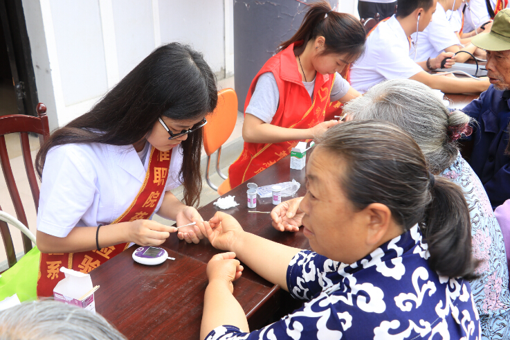 此次志愿服务活动为期2天,第一天服务总队来到雨城区飞机坝社区和对岩镇龙岗村,开展以“践行群众路线,送医送法下乡”为主题的便民服务活动,为居民提供免费医疗和法律知识宣传服务。活动中,内科马宜龙老师现场为居民们看病,热情解答居民提出的健康问题,嘱咐他们要慎重用药和如何吃药。志愿者们为居民们测量血压和血糖指数,结合自己所学的临床知识讲解糖尿病、高血压等高发疾病的预防保健知识,发放预防常见疾病的宣传单。同时悬挂出“网络的利、害之处”、“青少年拒绝毒品的方法”、“打击非法集资”等宣传海报,发放宣传单,为居民讲解相关法律知识。