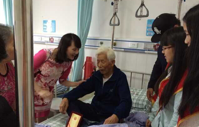 我院的学生代表向5位老干部赠送礼品,表达崇敬之情,并合影留念。座谈会在暖意浓浓的气氛中落下帷幕。了解到还有3位老干部尚在医院未能参会,高运荣带领志愿者们前往医院看望他们。
