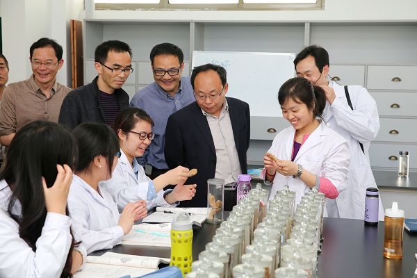 4月16日,达州职业技术学院党委书记杨大荣,党委副书记潘传中,党委副书记、纪委书记蒋绍贤带领党政办、组织人事部、宣传部、学生工作部、思政部等部门负责人来院考察,主要就党委行政议事规则、办学章程制定、党建、干部队伍建设、宣传思想政治工作、学工队伍建设等与我院进行了交流探讨。我院党委书记张大凯,党委副书记付洪涛,纪委书记、组织人事部部长谭宏,副院长、党政办主任樊先茂陪同考察了青年路校区的实验实训室,并与来宾进行了座谈。