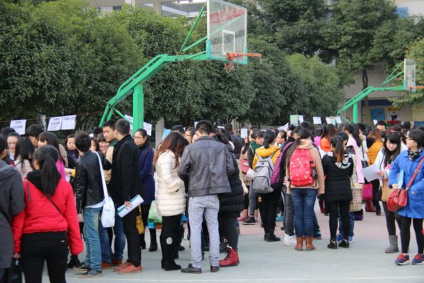 双选会刚开始,就看到各个用人单位的展位前排起了长长的队伍,“选择”、“被选”,让用人单位和学生都充满了期待。现场,不仅有长期合作的单位、企业,还出现了如双流航空港美语幼稚园等慕名而来的用人单位。