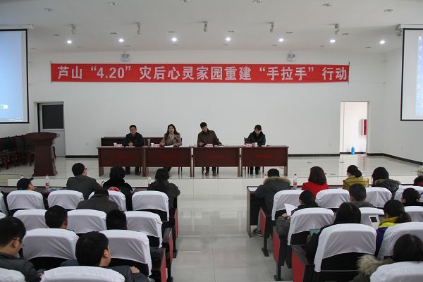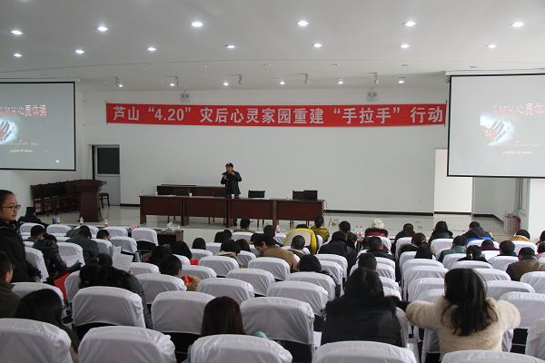 12月13日,石静院长率科研处、宣传部负责人及学院心理学专业教师团队一行12人赴芦山县开展“4.20”灾后心灵家园重建援助服务活动,这是学院与芦山县校县合作又一实质性的推进。芦山县委常委、组织部长李健强主持仪式,石静院长和芦山县人民政府副县长王东分别发表讲话,来自公安、交通、财税等党政系统200余名公务员参加了活动。