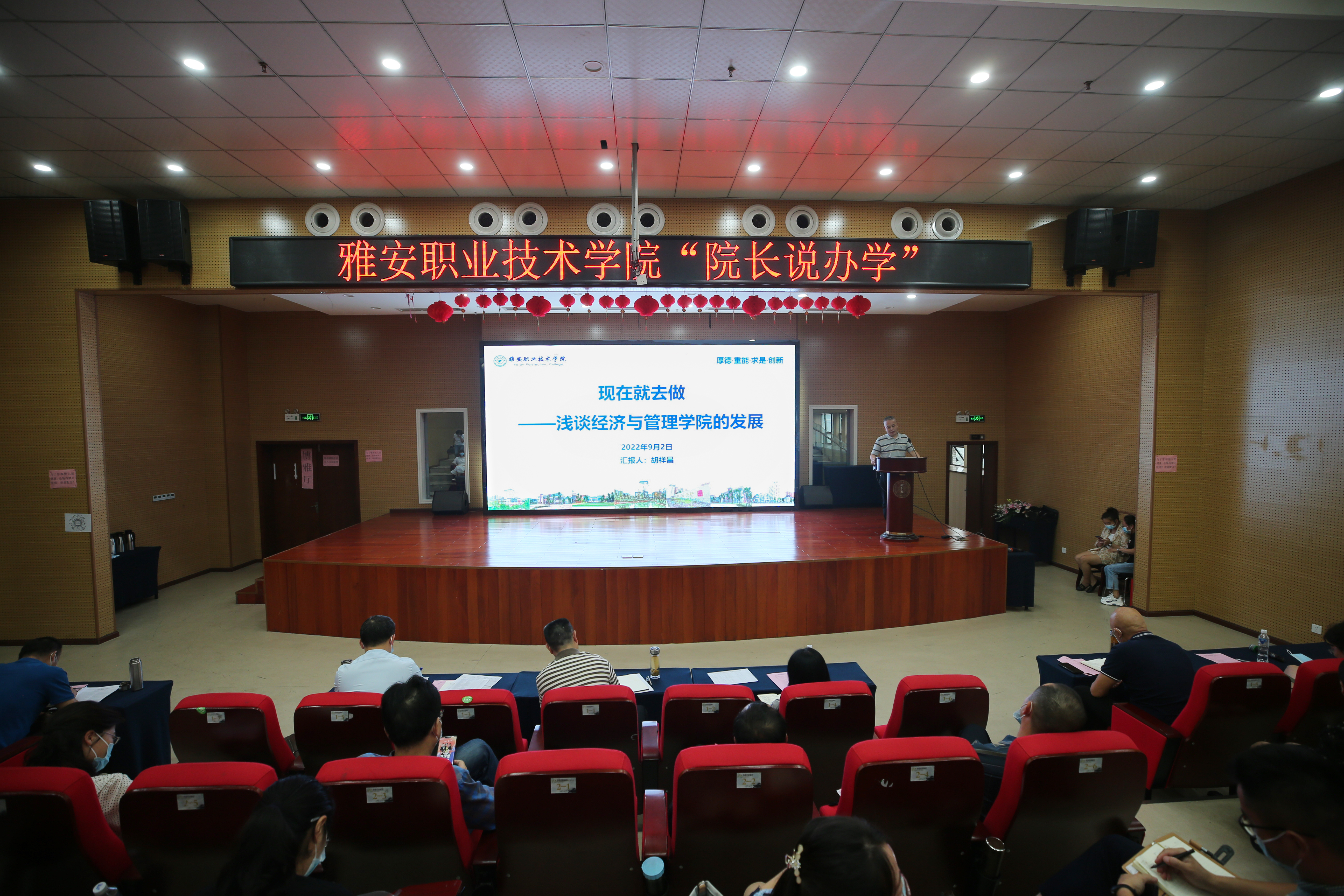 9月2日下午,学院在青年路校区博雅厅开展beat365英国官方网站“院长说办学”活动。学院党委书记李春模,党委副书记、院长黄诚出席会议,学院党政班子成员、各二级单位负责人、教研室主任、专业负责人、中青年骨干教师参加了此次活动,副院长彭裕红主持会议。