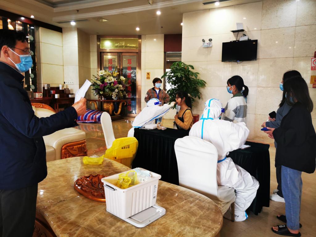 迎新工作有序开展之余,返校后学生的安顿工作也在井然有序的进行中。十六工会小组组长、中医与康复养生学院教师罗肖雷,已连续四天奔走在服务保障一线,每天早上7点过,罗老师便到达迎新现场,和众多志愿者老师一起,为一批批返校学生搬行李、送盒饭、买日用品,检查防疫,忙得不亦乐乎,每天忙到傍晚六七点才结束。从经开区校区到青年路校区,再到育才路校区,面对千头万绪的学生志愿服务工作,罗肖雷无巨细的悉心相助。10月13日,家住名山区的学院第九工会小组组长、科技图书情报处职工黄钢一大早就起床,匆匆忙忙洗漱后来到名山福隆大酒店,和学院的其他老师一起,参与到对滞留名山的学校学生的疫情防控工作中,协助他们核酸采集,引导他们到餐厅就餐,对还未集中核酸的学生,引导他们就近到公共采集点完成核酸检测,忙得浑身是汗......