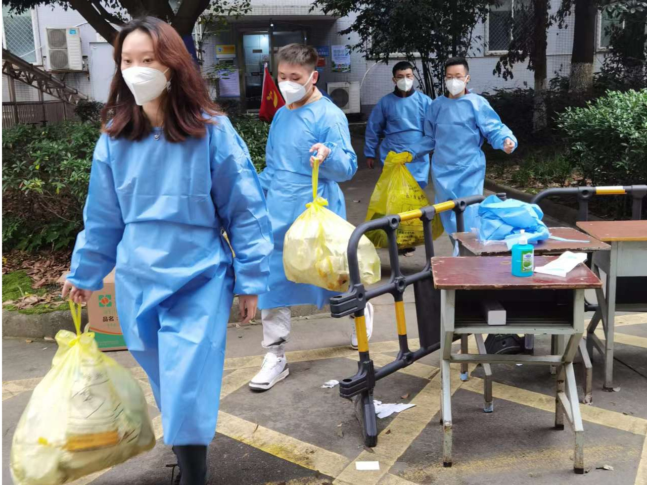 10月11日,宣传统战部新进教师周琨瞒着腰部扭伤的情况,加入首批教师志愿服务队,进驻育才路校区健康观察点,积极参与到为学生配送三餐、收拾生活垃圾的志愿服务中,10月12日—14日,宣传统战部新进教师鲁玉连续三天奋战在育才路校区健康观察点,除完成志愿服务工作外,还要见缝插针地采写新闻信息。她们虽为“新兵”,却敢于冲锋在前;虽入职不久,却毅然投入战“疫”。她们是雅职青年教师的缩影。