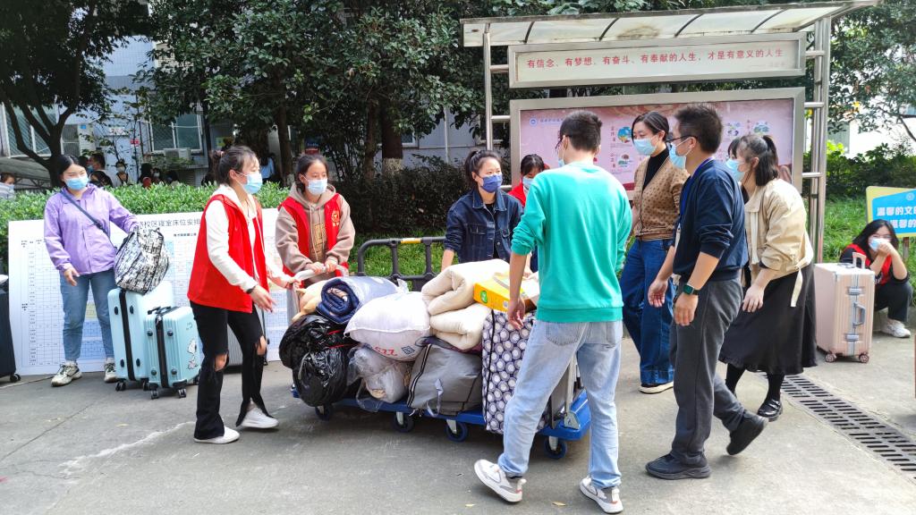 智能与信息工程信学院2022级新生张琳谈到:“很荣幸能参与这一次志愿者活动,我们入校时看到老师忙前忙后,想着自己能出一点力就出一点力,尽管微不足道,也希望能给老师们减轻负担。感谢学校给我们这次锻炼的机会,希望学校越来越好。”