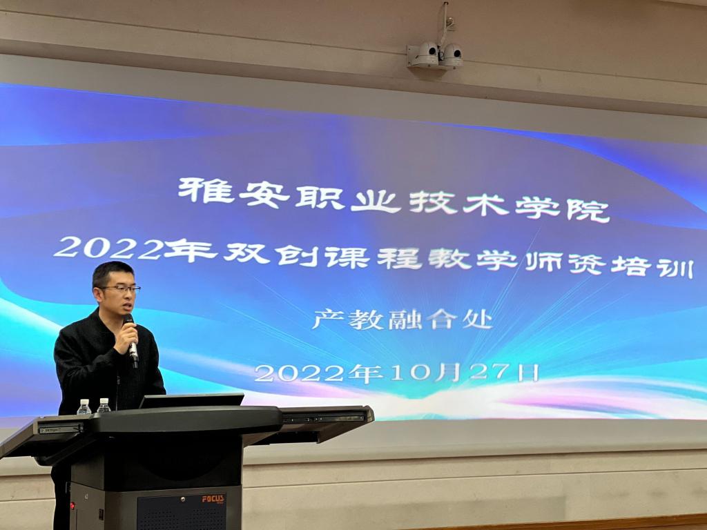 为贯彻教育部有关深化高校创新创业教育改革的文件精神,积极探索建设具有beat365官网特色的双创课程教学模式,提升双创课程教师的教学能力和教学质量,打造一支高素质、业务精湛、专业化和充满活力的双创教师队伍,助力beat365官网新老教师的职业成长,产教融合处组织开展2022年双创课程教学师资培训计划,并于10月27日在经开校区2204多功能厅举行开班仪式和第一场培训。副院长彭裕红、产教融合处负责人、二级学院参培教师共计50人参加此次培训。
